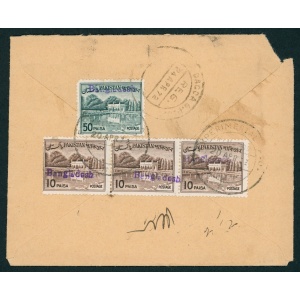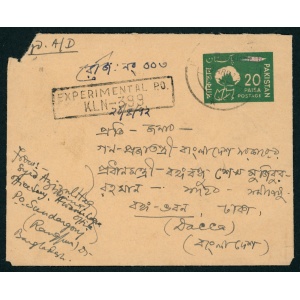 1972 Pakisztán – Bangladesh felülnyomás díjjegyes borítékon és bélyegeken + EXPERIMENTAL PO bélyegzés