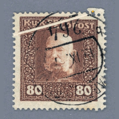 • 1915 Austria – K.u.K. Militarpost – Franz Joseph 80 heller with spectacular paper wrinkle