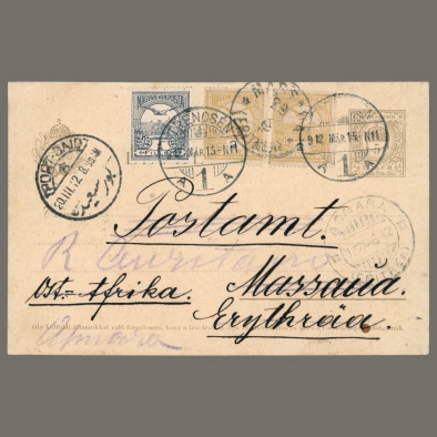 • 1912 Hungary – postal stationery with additional postage, sent from Trenčín to Eritrea – extremely rare destination