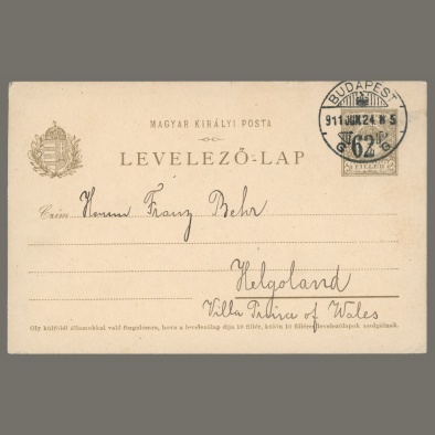• 1911 Hungary – Postal stationery sent to Heligoland, to the villa of the Prince of Wales