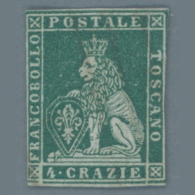 1857 Italy – Tuscany – “Lion of Tuscany” 4 Cr – 2nd watermark | Sw: 100 EUR