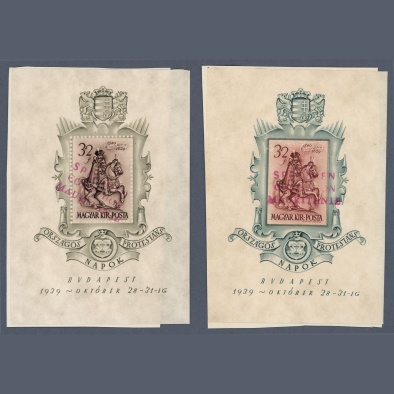 • 1939 Hungary – Pair of Bethlen miniature sheets with overprinted Mauritanian UPU specimen, exciting speciality