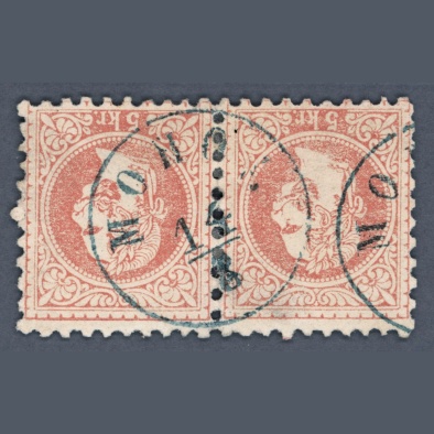 1867 Hungary – 5 kr pair with nice blue MOHOL postmark – Gudlin 500