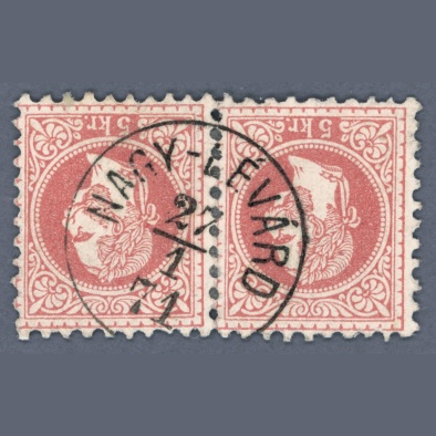 1867 Hungary – 5 kr pair with NAGY-LÉVÁRD postmark | Gudlin: 500 points