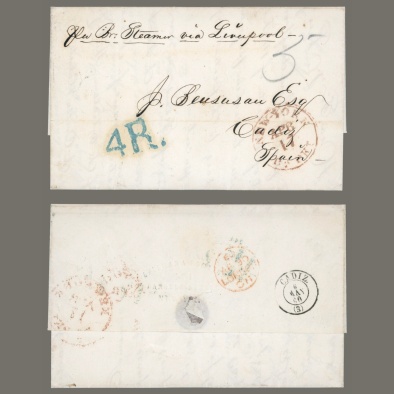 1857 Spanish West Indies – 2R block of ten with gum and with hand cancellation