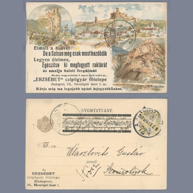 1896 Hungary – Millennium 2 krajcar postal stationery used in 1907 with very rare ‘Erzsébet cipőgyár’ overprint