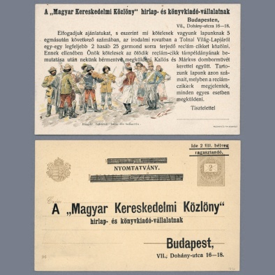 1896 Hungary – Millennium 2 krajcar postal stationery postcard with rare “Magyar Kereskedelmi közlöny” overprint