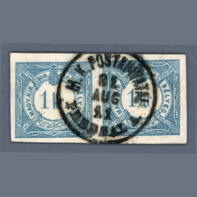 • 1868 Hungary – 1 kr newspaper duty pair with luxury M.K.POSTAHIVATAL / PREDEAL A. postmark