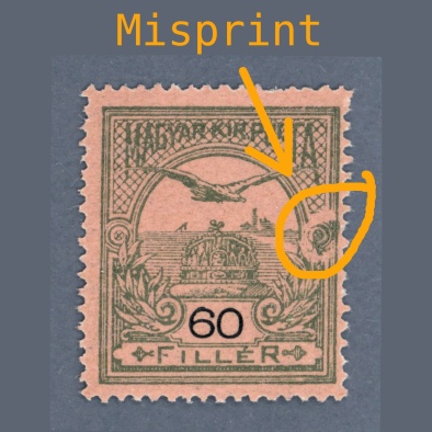 1913 Hungary – Turul 50 filler, with misprint in the denomination