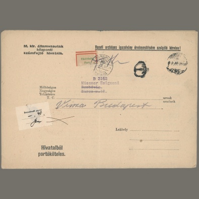 • 1938 Hungary – Airmail letter sent to Australia – the paid 1.60 Pengo postage was insufficient, so the 20 filler shortfall was added en route and the difference collected later from the sender.