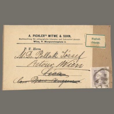 1867 Austria – Wrapper sent to Leva – Returned to Vienna with “Meghalt” label