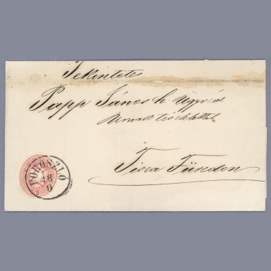 • 1863 Austria – Hungary – 5 kr postal stationery cutout used on cover sent to Tiszafüred with Poroszló postmark | Ferchenbauer 900 EUR