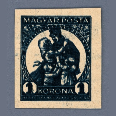 1920 Hungary – Prisoner of War 1 korona proof – double print on yellow paper