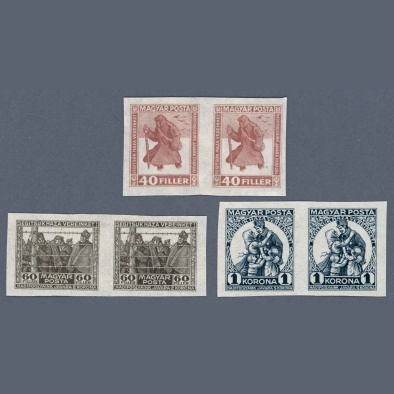 1920 Hungary – Prisoner of War imperforated proof set on very thin paper