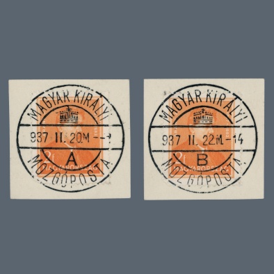 • 1937 Hungary – Royal Hungarian Moving Post Office A and B postmarks from the Klassohn estate