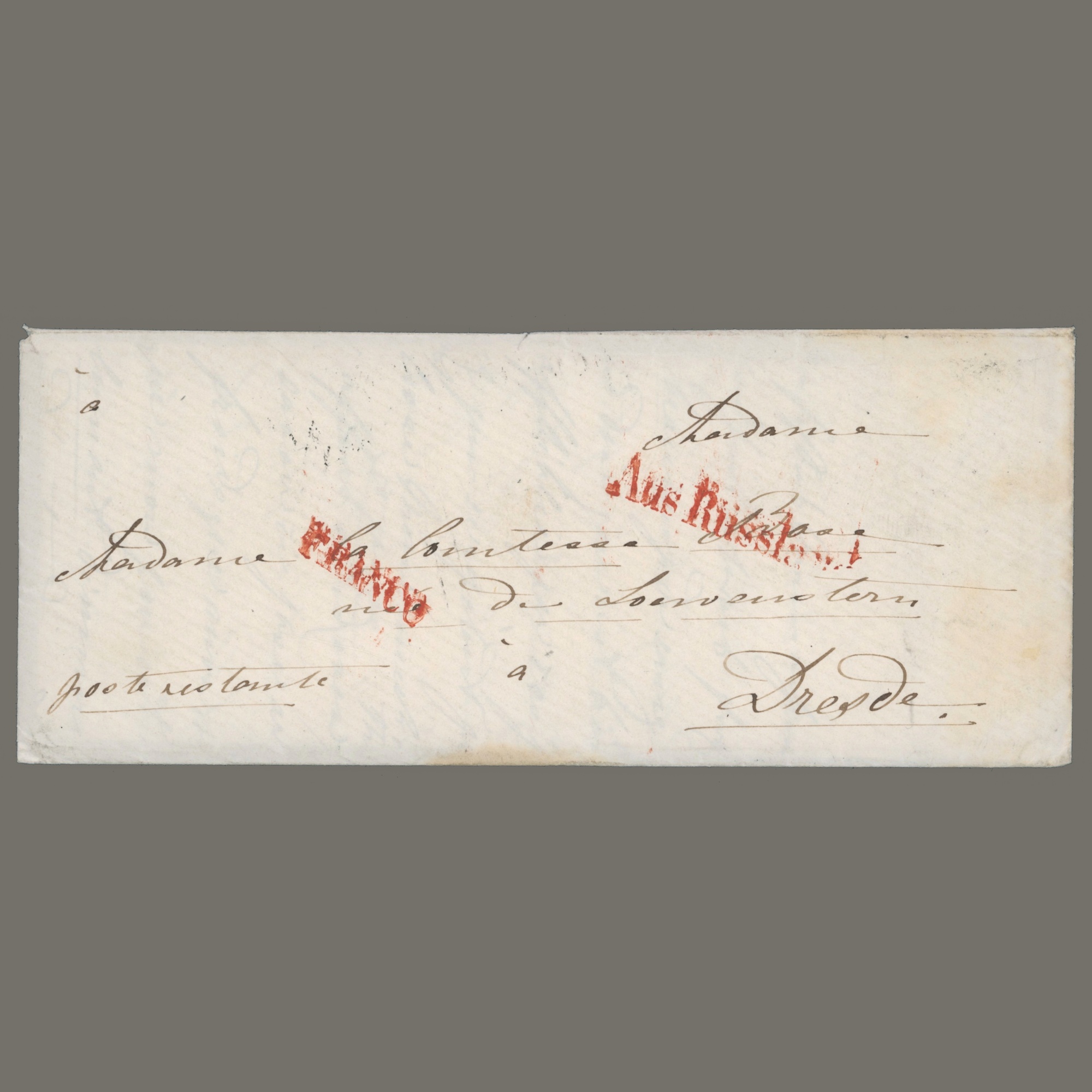 1834 Russia – poste restante prepaid letter sent to Dresden with nice transit postmarks