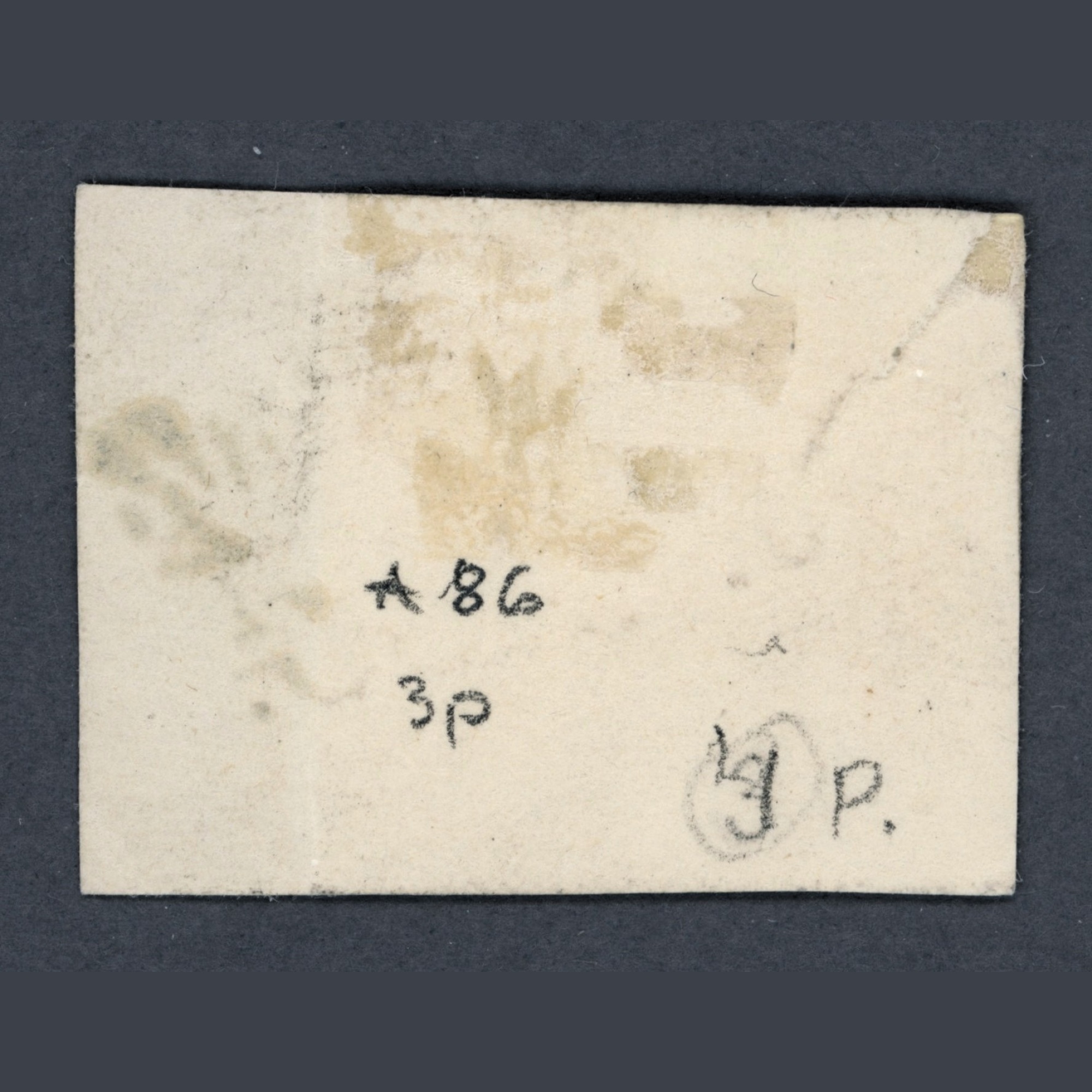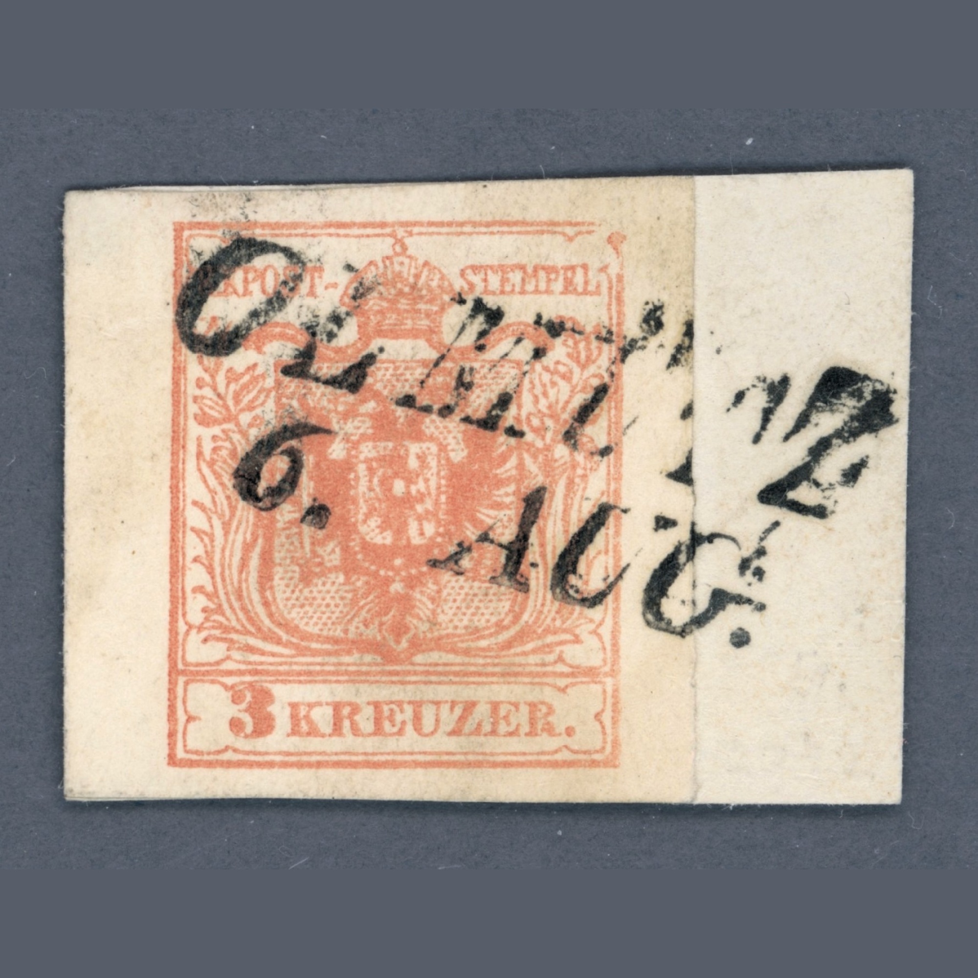 1850 Austria – 3 kr MP type III, spectacular plate error in upper right corner, with OLMÜTZ postmark