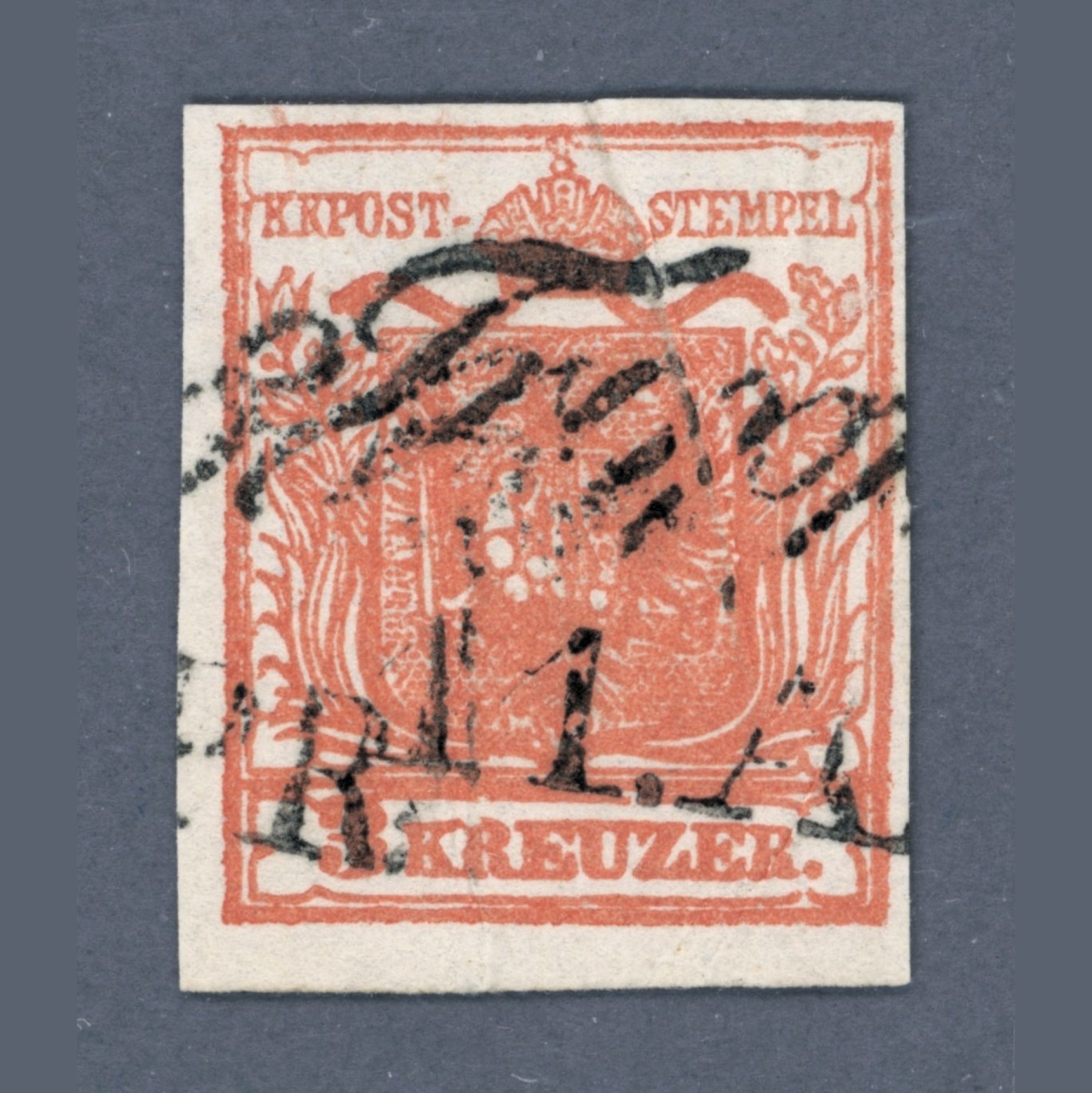 1850 Austria – 3 kr type I. HP – with spectacular plate error in the middle of the coat of arms