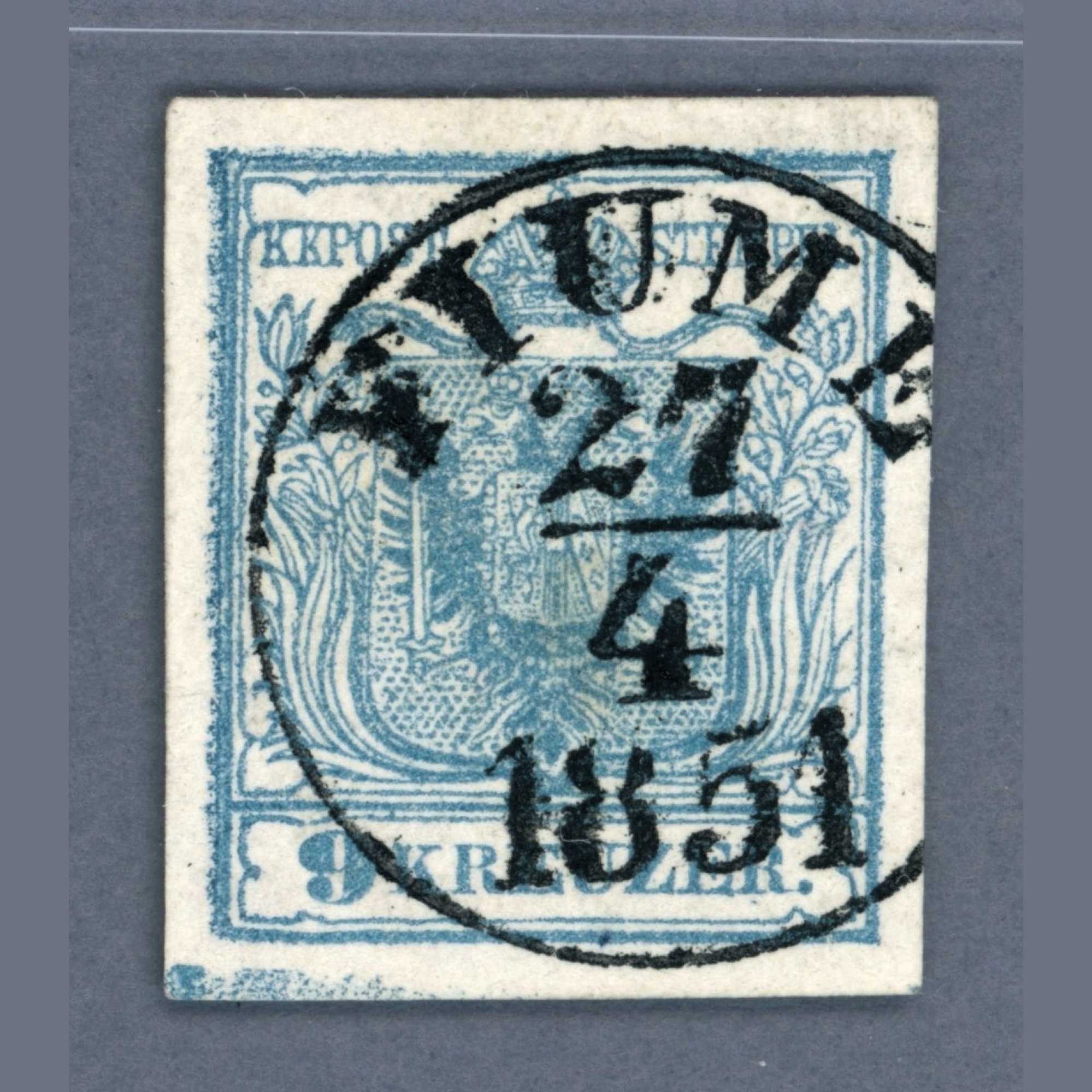 1850 Austria – 9 kreuzer HP type I with beautiful “balken” – luxury FIUME postmark