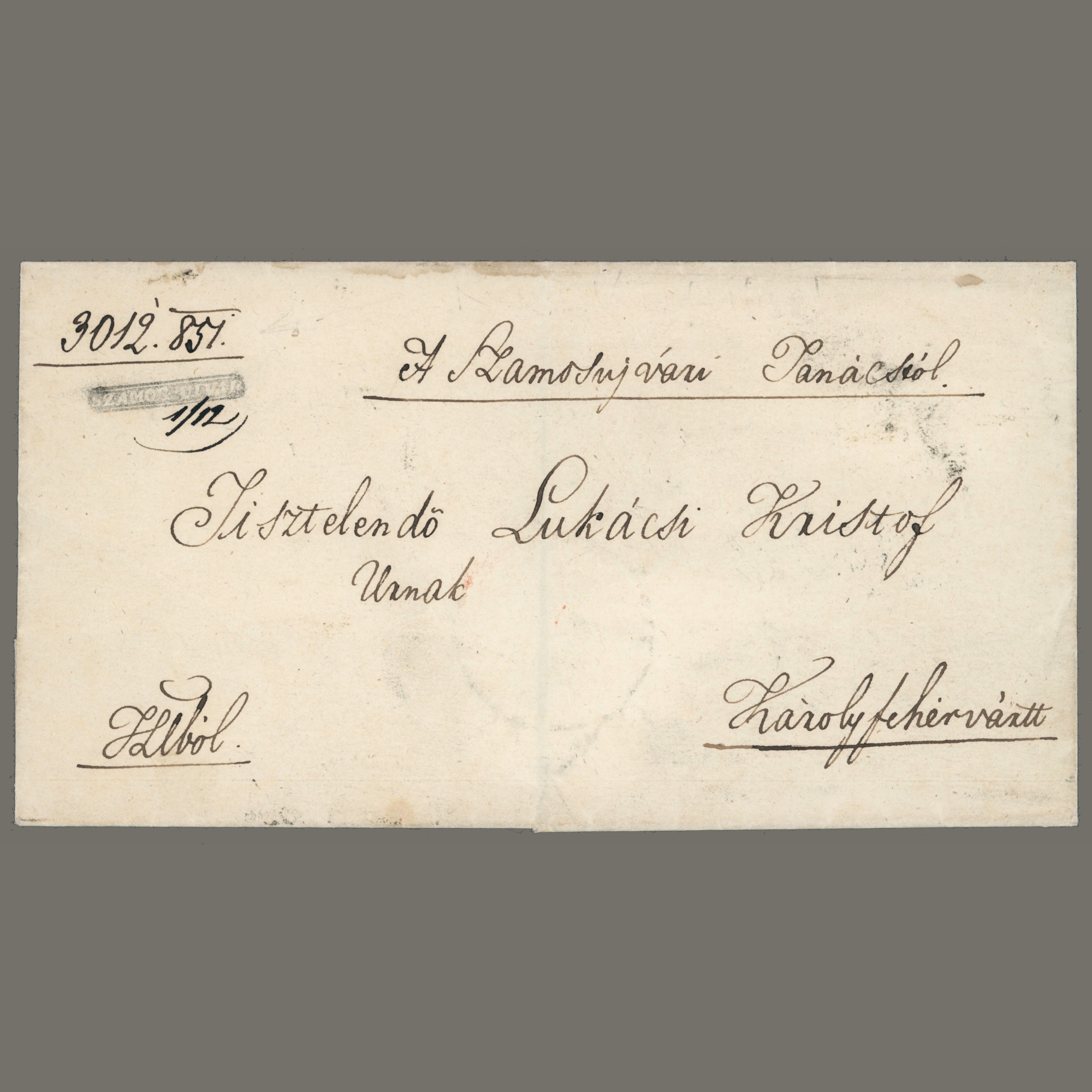 1851 Austria – Official cover with Szamosújvár negative postmark with handwritten date added, wax seal cut out on the back | Rompes: 200 points | Müller: 40×20 points