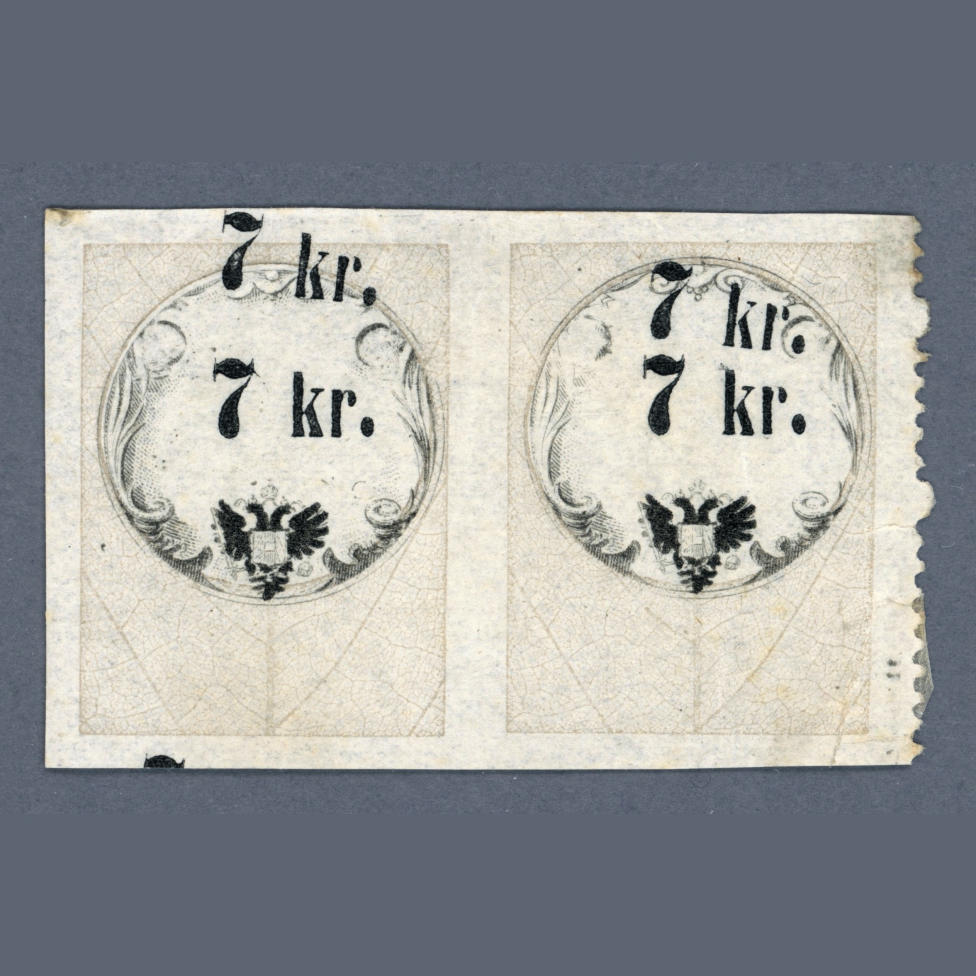 1858 Austria – 7 kr revenue stamp with book print center, with double print of the value number