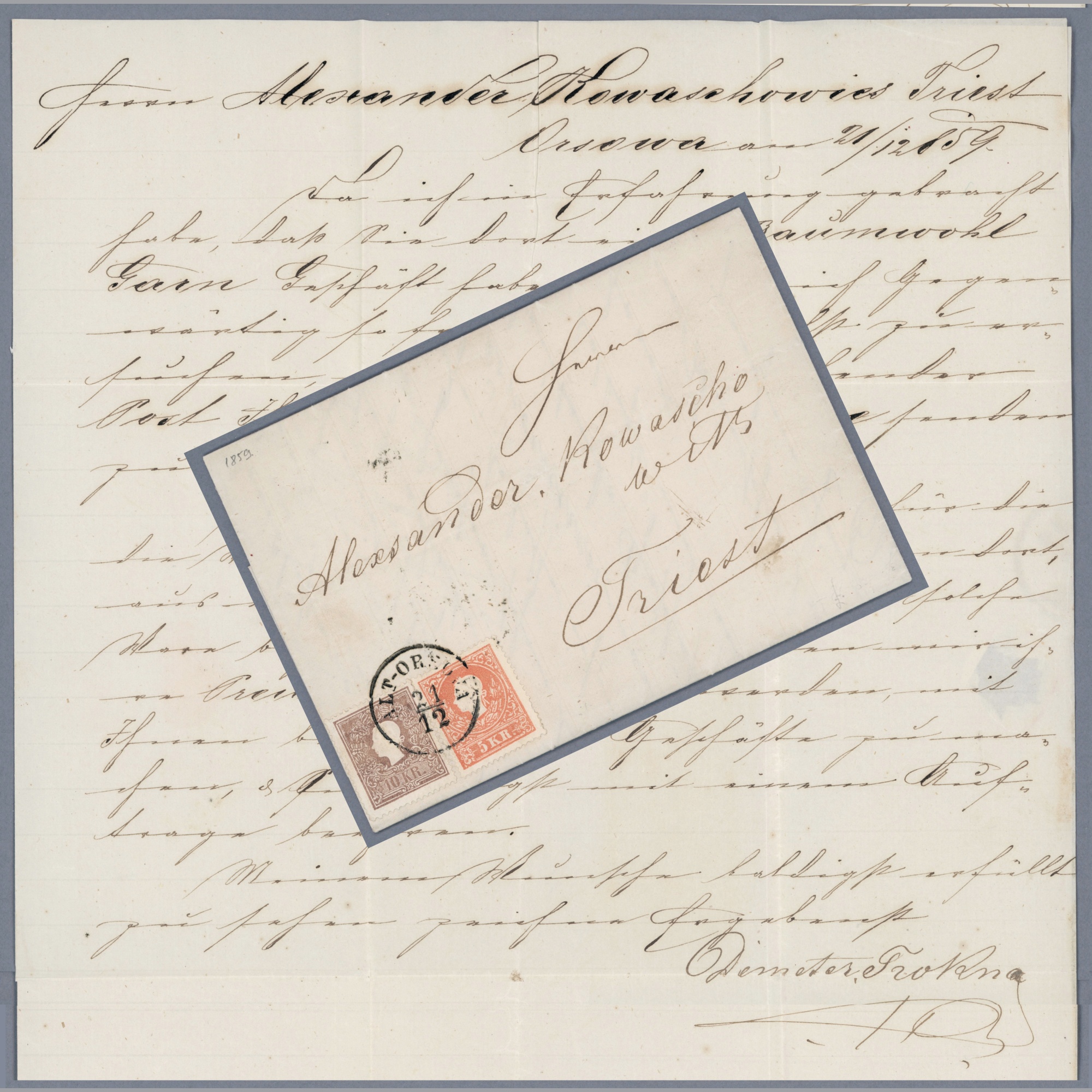 1858 Austria - Hungary - Romania - two-colour franked, nice quality letter without a fold mark on the front side, and with Alt-Orsova postmark