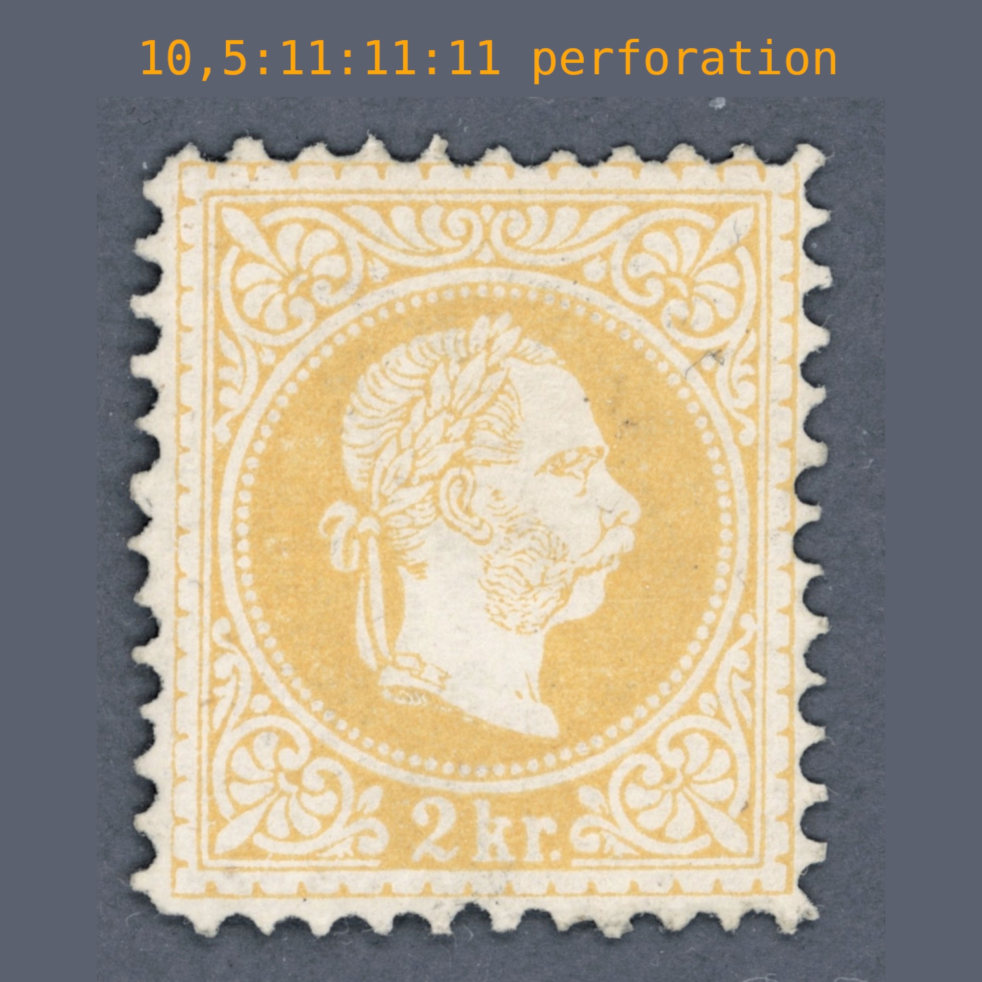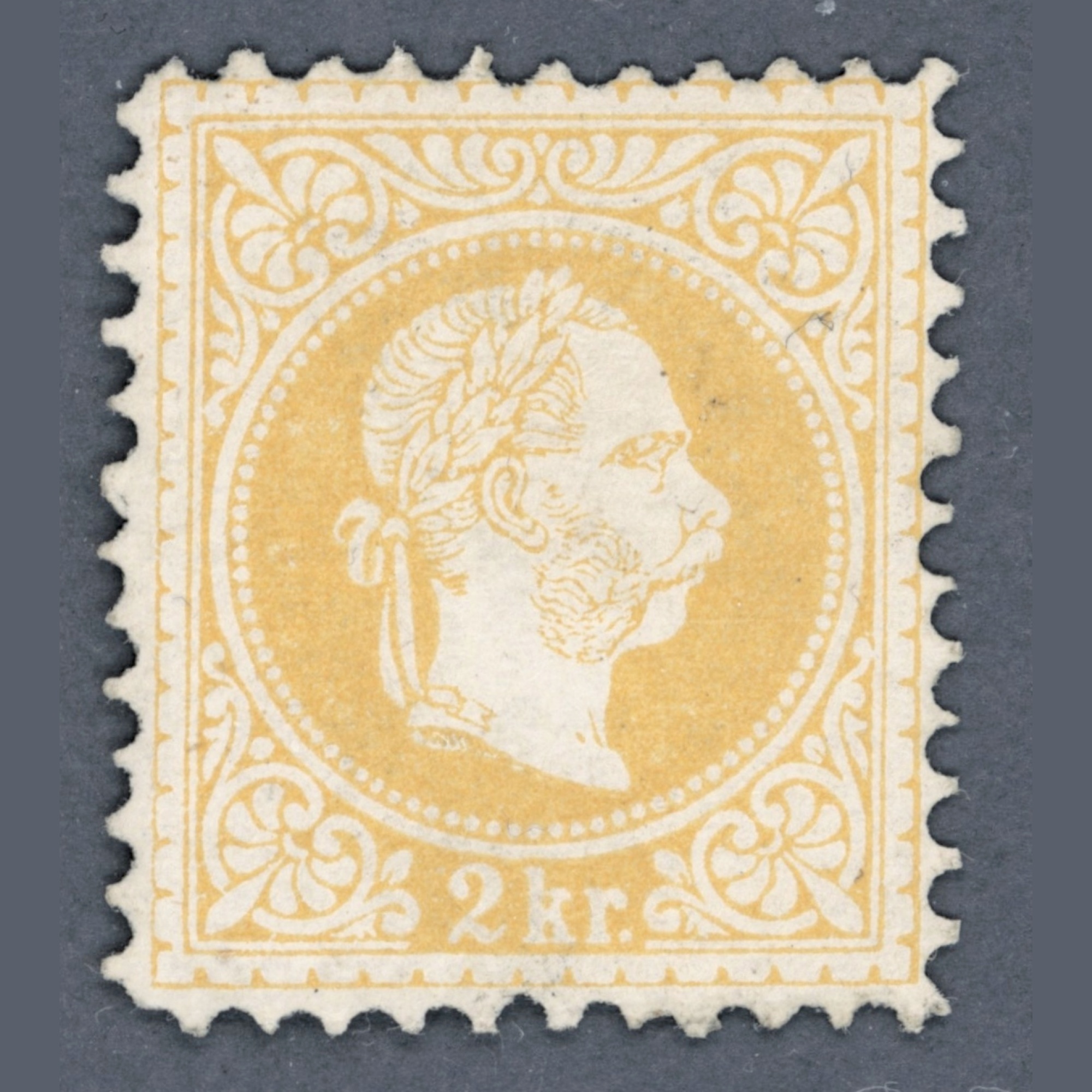1867 Austria – fine impression mint hinged 2 kr with 10.5:11:11:11 perforation – Ferchenbauer perforation 10.5 price is 75 EUR