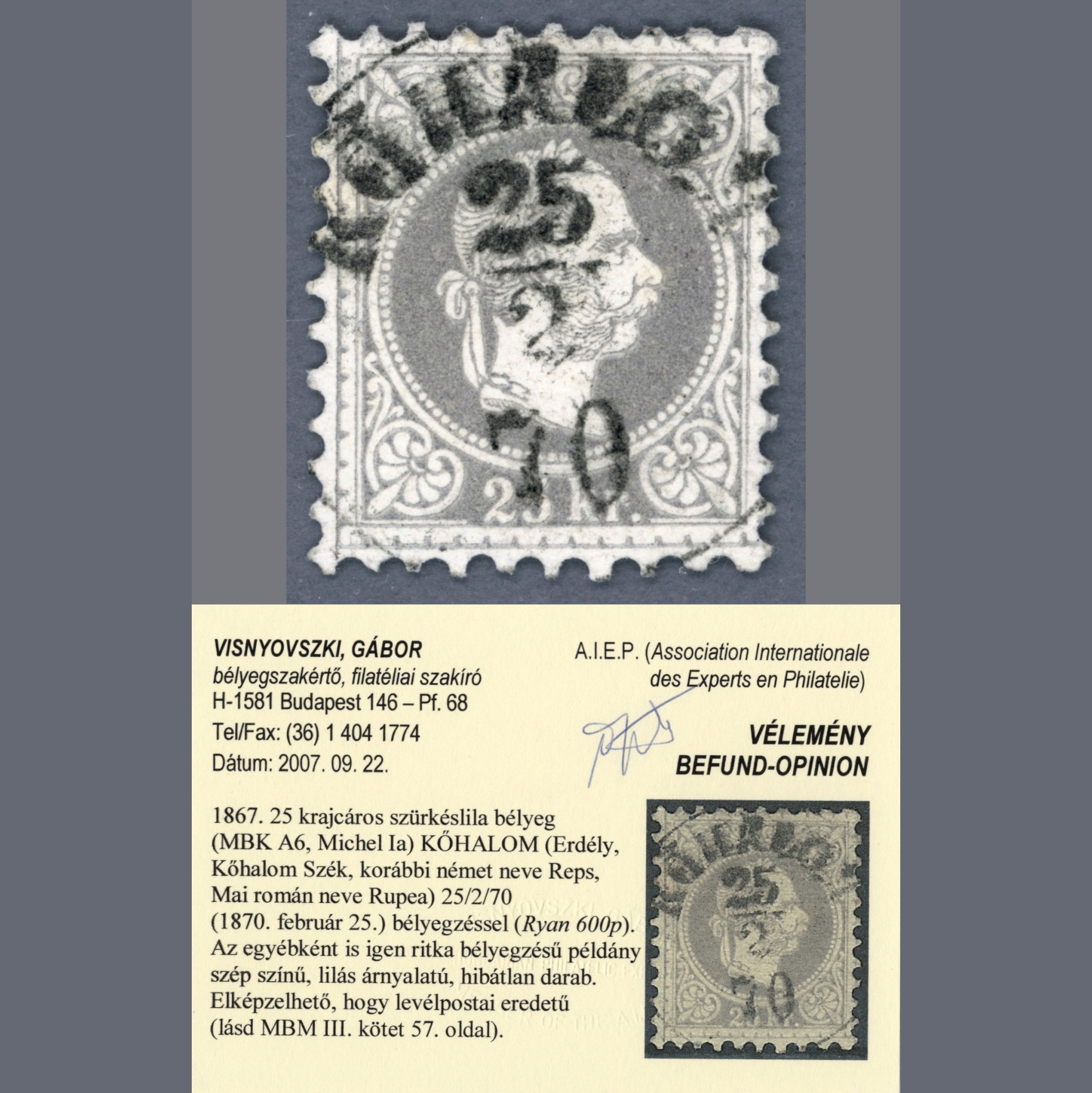1867 Hungary – 25 kr stamp with KŐHALOM postmark | Attest: Visnyovszky
