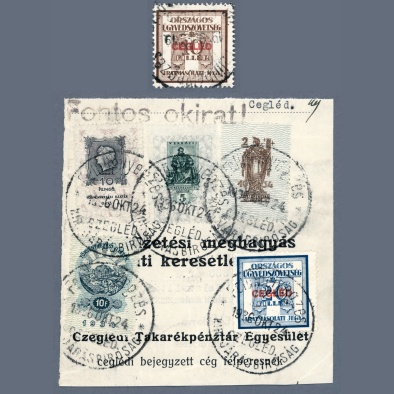 • 1936 Hungary – National Lawyers’ Association 10+20 filler stamps, rarely seen with Cegléd overprint