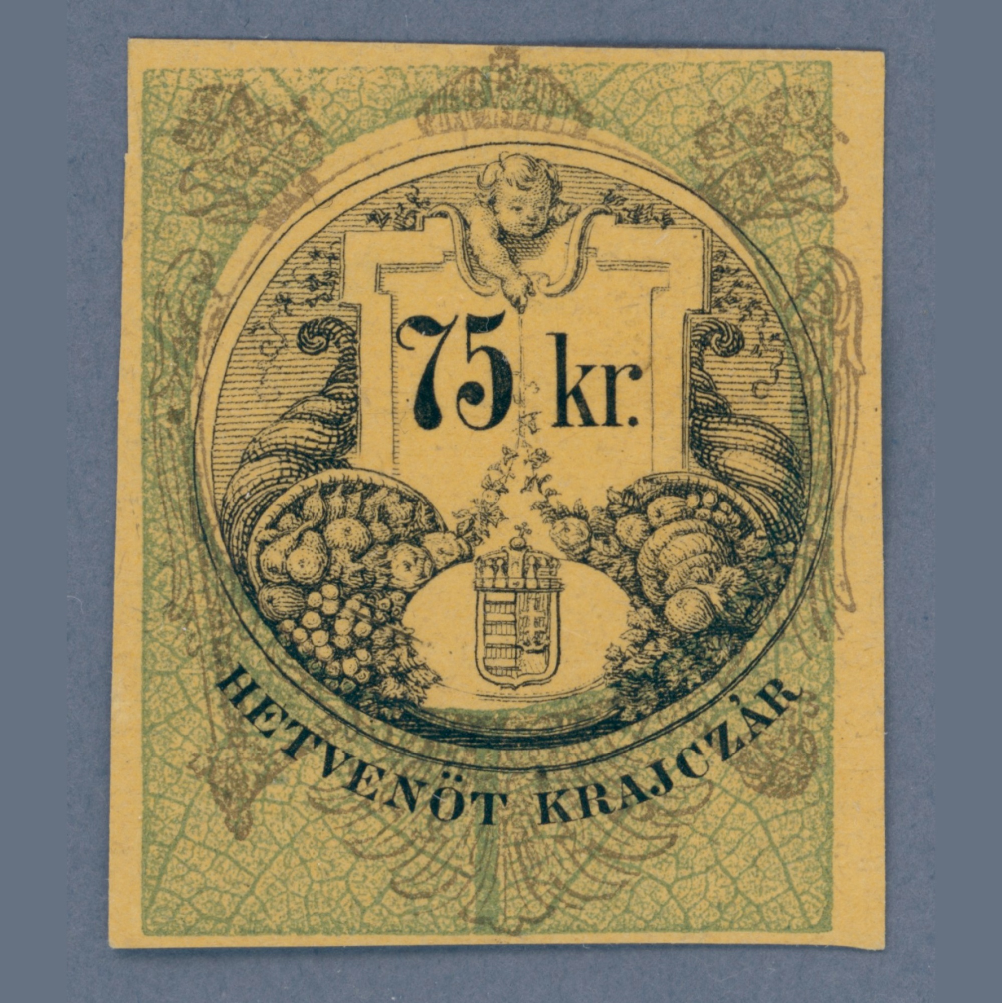 1868 Austria – Hungary – Military border documentary stamp 75 kr as proof on orange paper | Attest: Szűcs