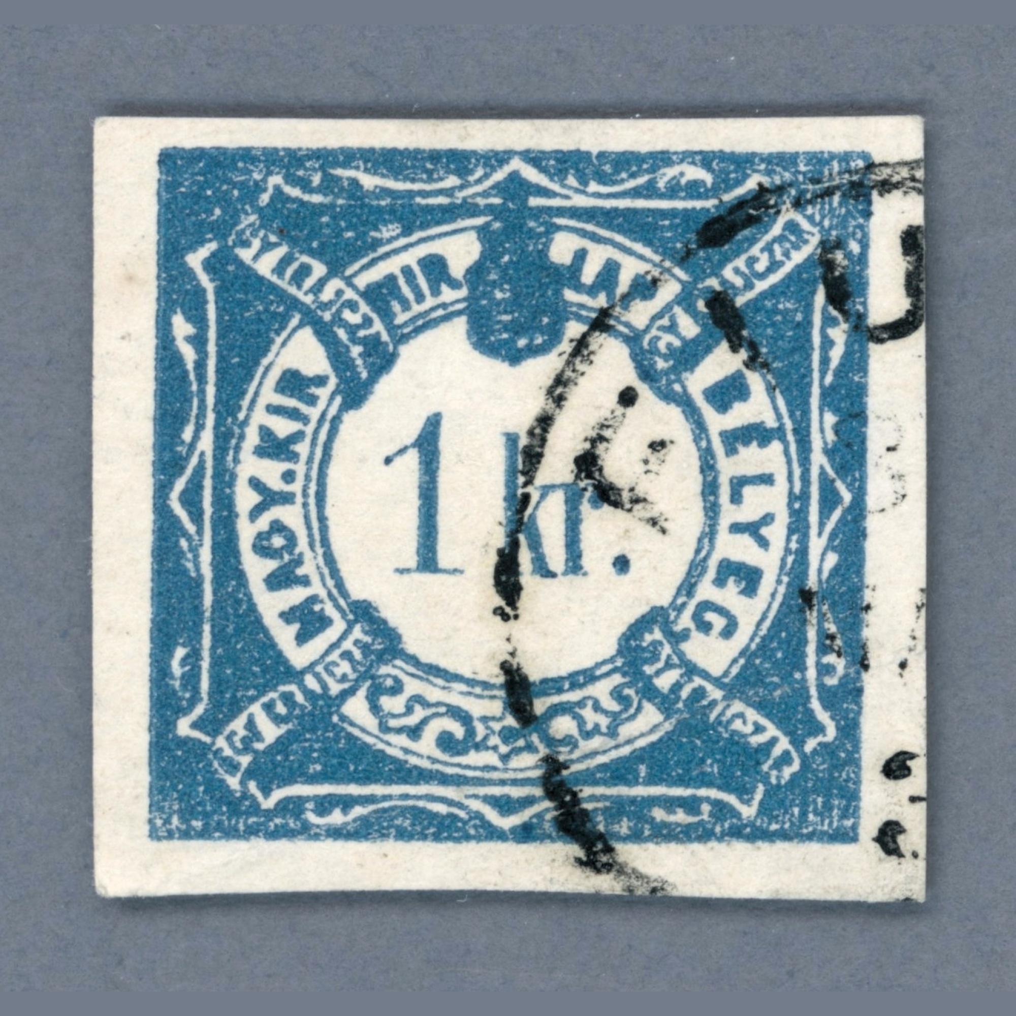 1868 Hungary – 1 kr newspaper duty stamp with extreme overpainting and with a Fiume postmark