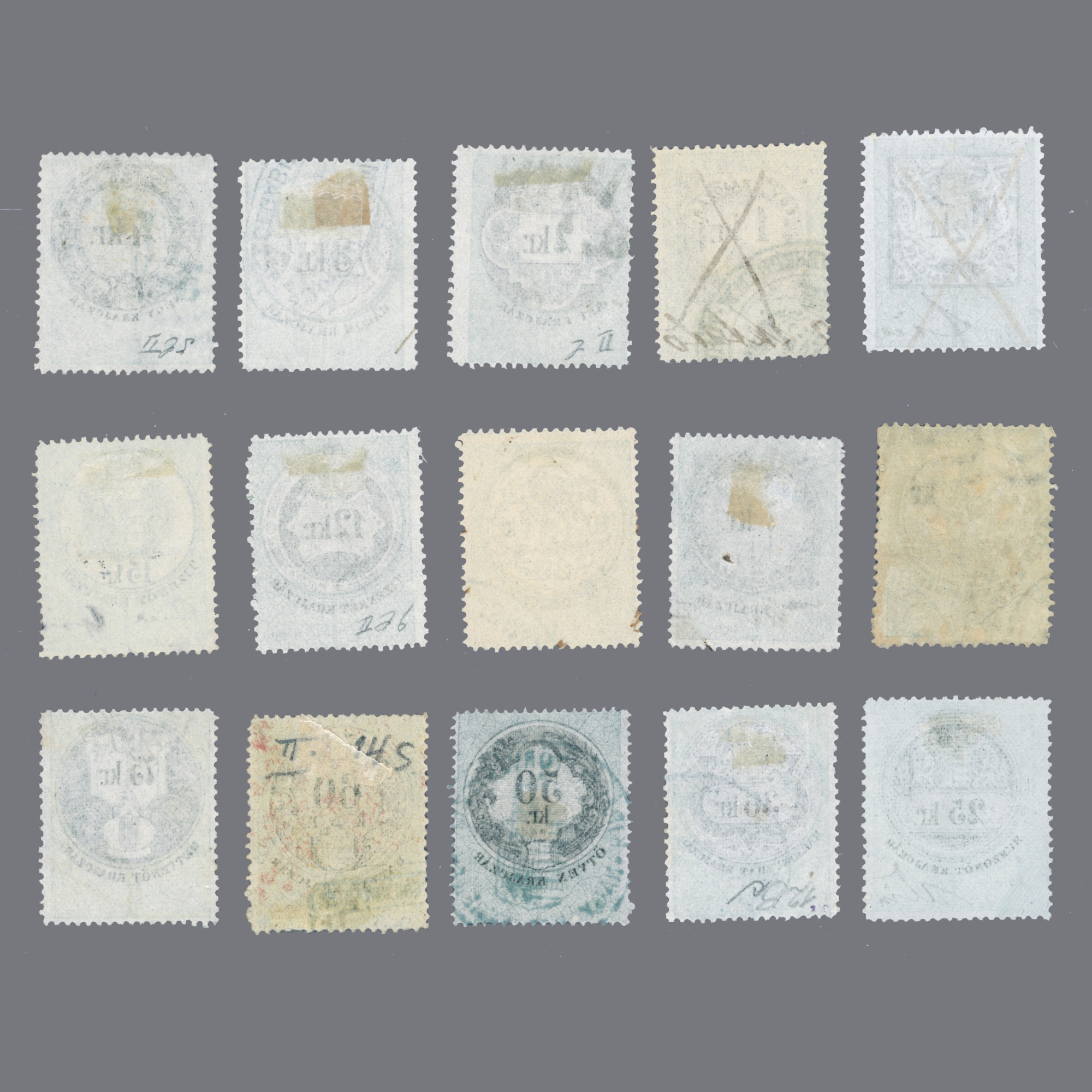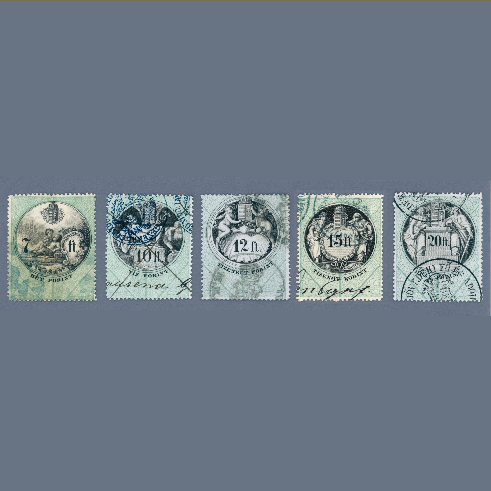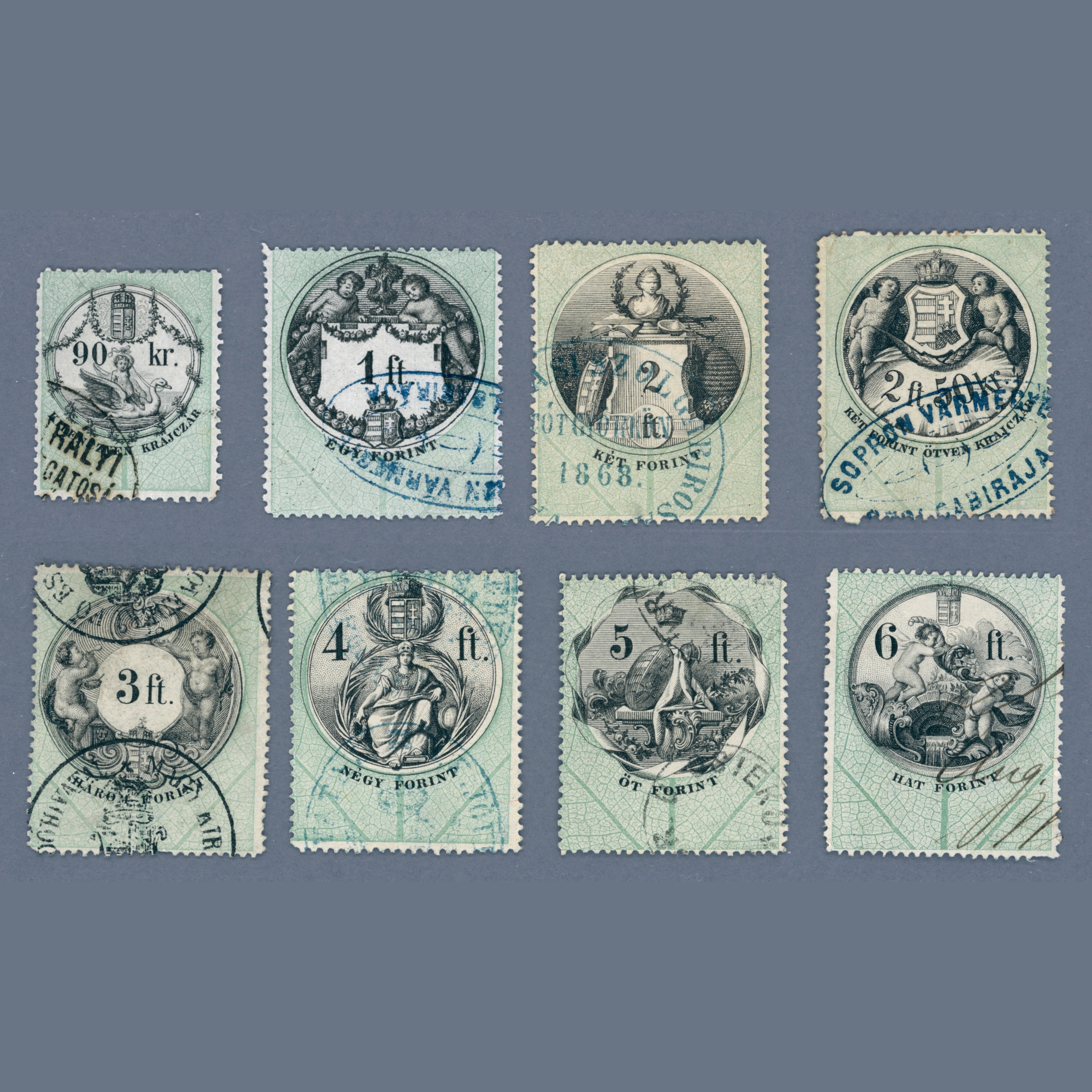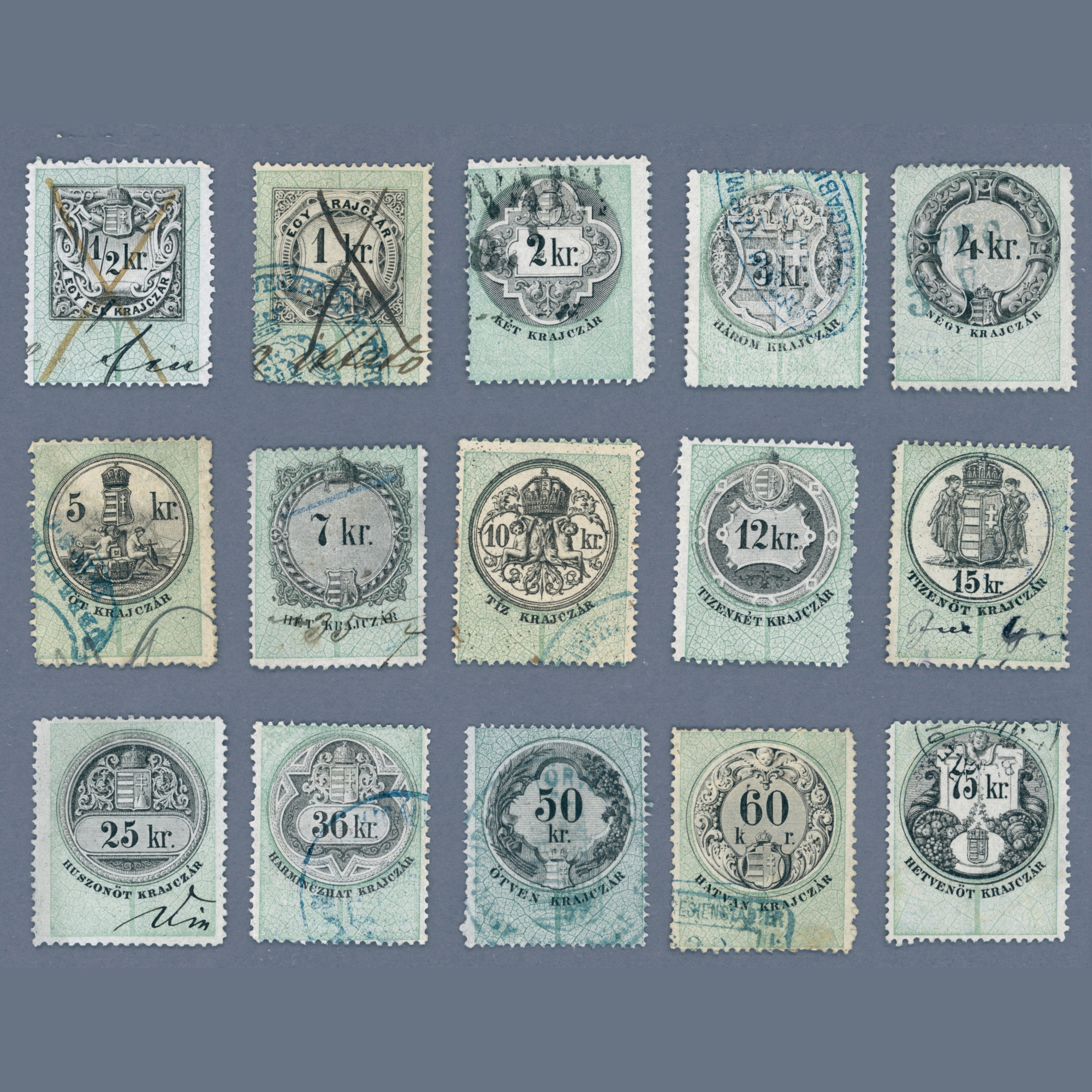 1868 Hungary – Complete set of revenue stamps, without watermark | Szűcs: 2080 EUR / PHu: 280 EUR