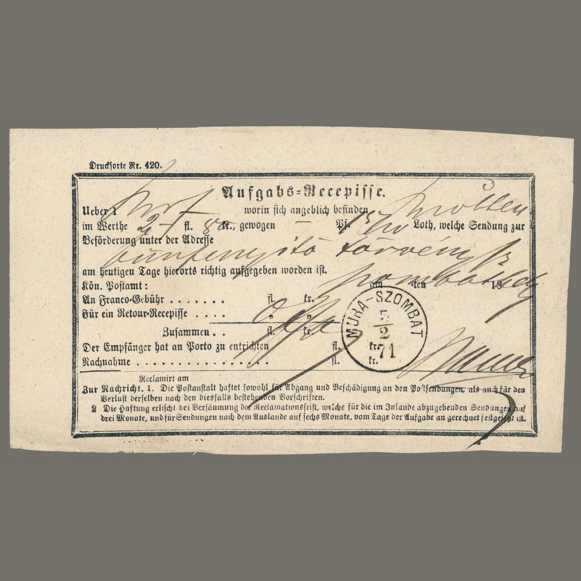 1871 Hungary – Austrian type recepisse used in Muraszombat