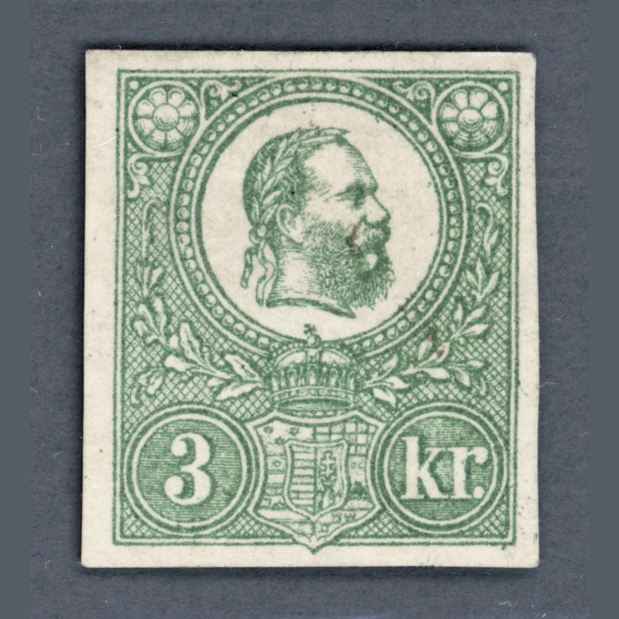 1871 Hungary – imperforated lithograph 3 kr type III. mint without gum