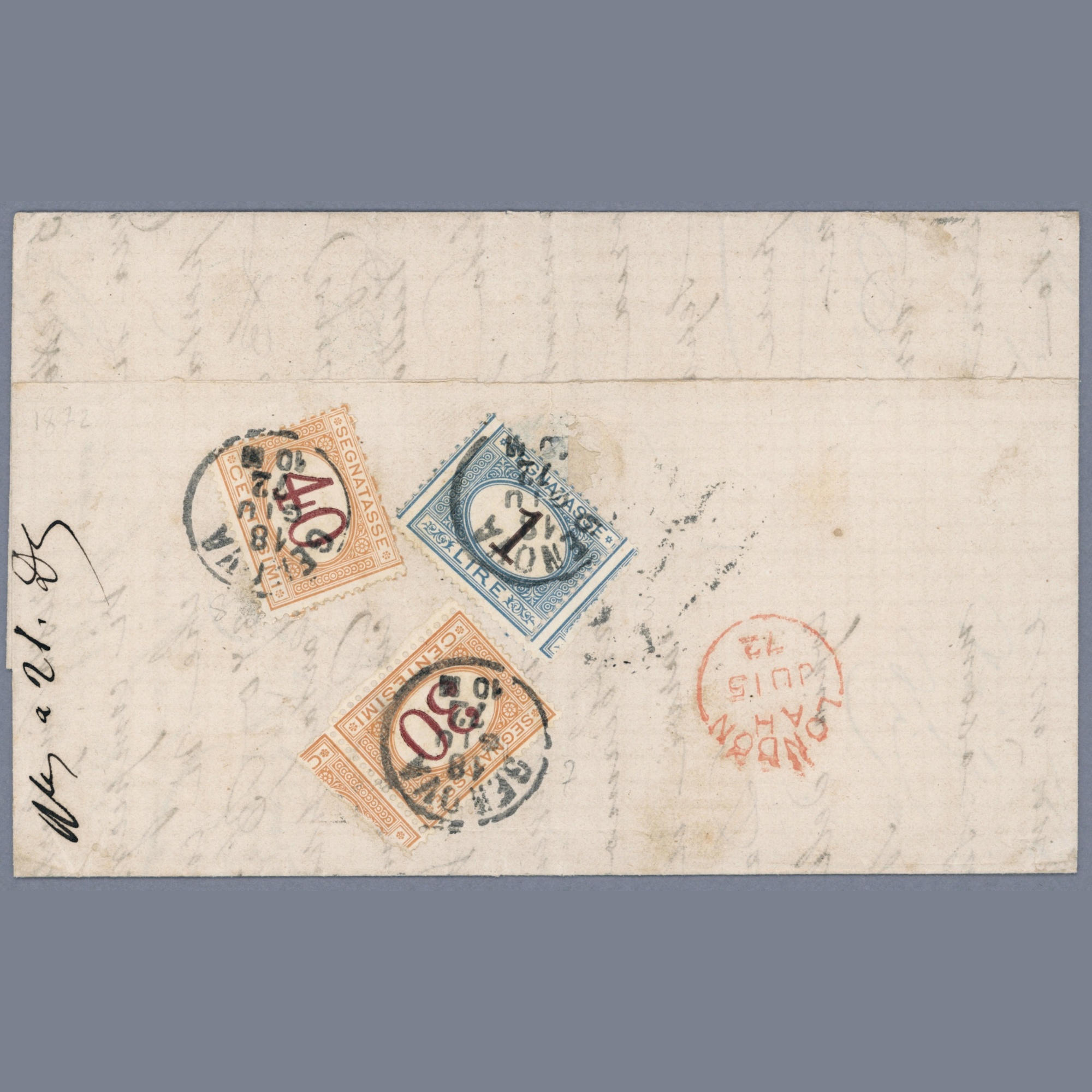 1872 Italy - Uruguay - Letter from Montevideo to Genoa with very high 1,70 lire Italian postage due - Image 3