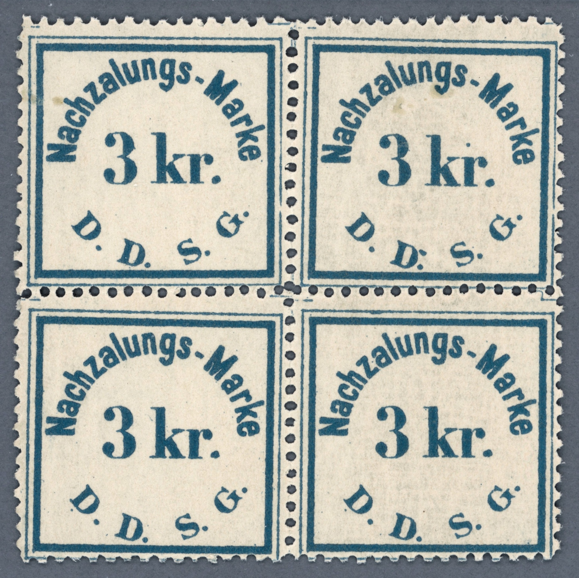 1884 Austria – DDSG – Nachzahlung Marke 3 kr – mint hinged in block of four – rarely seen in block of four