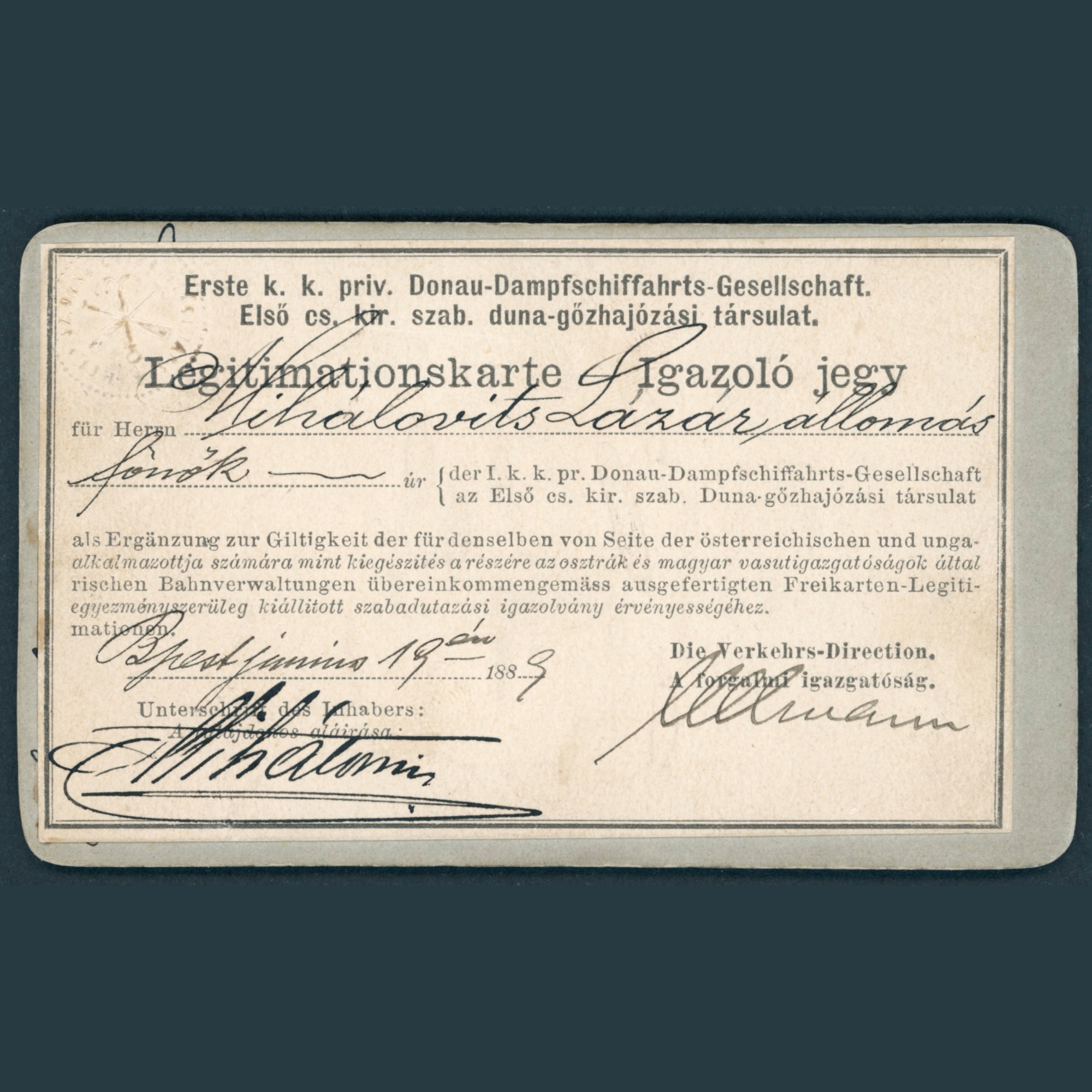 1889 Hungary – DDSG certificate for stationmaster Lázár Mihalovits