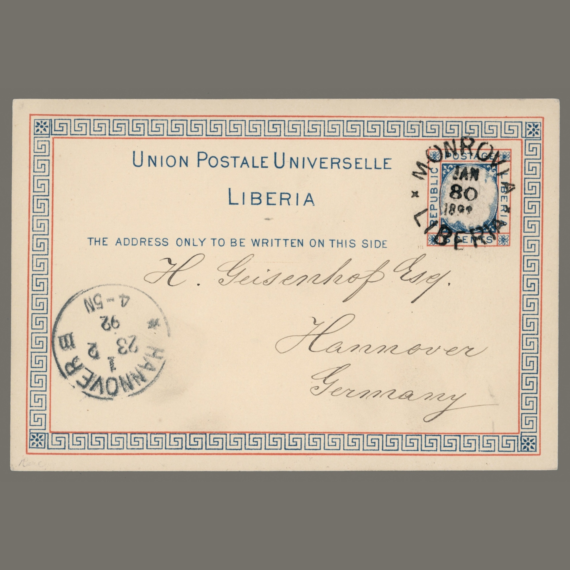 1892 Liberia – Postal stationery with a scraped portrait of the president sent to Germany