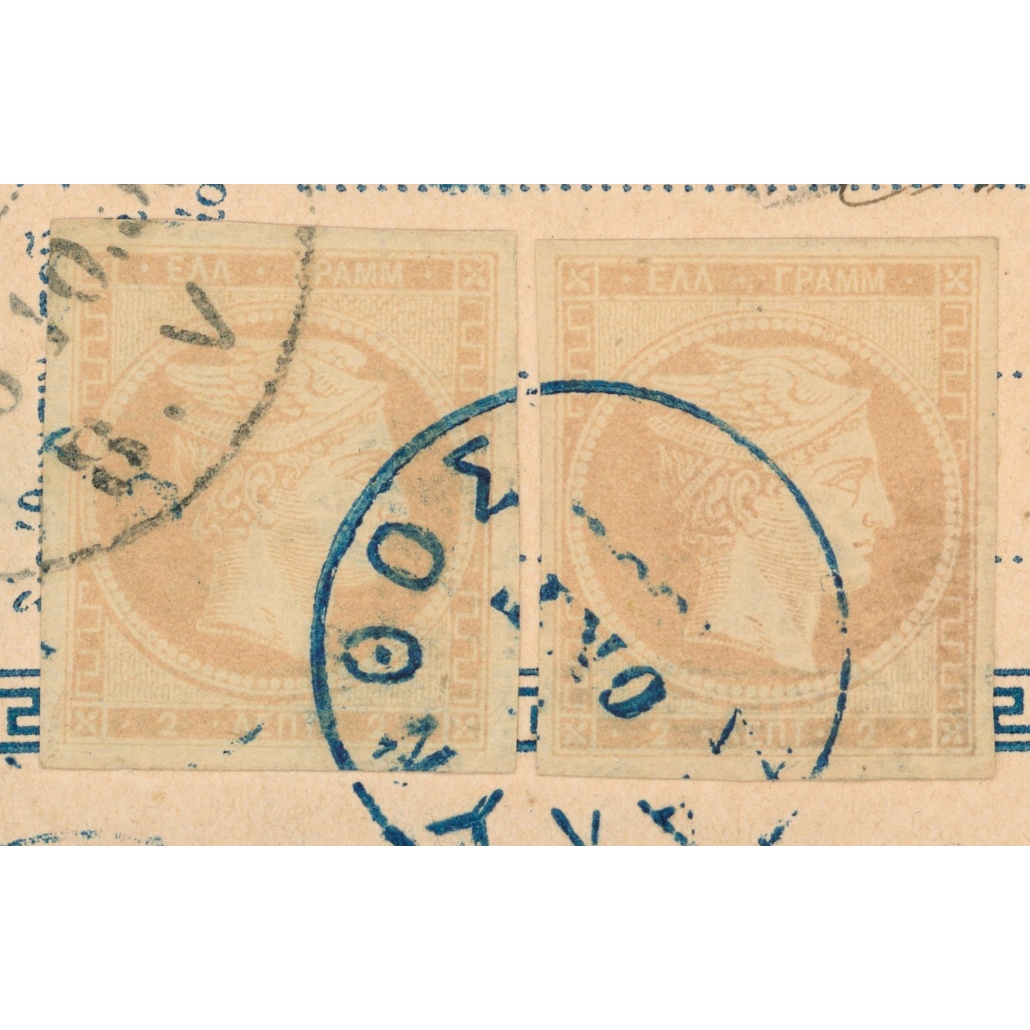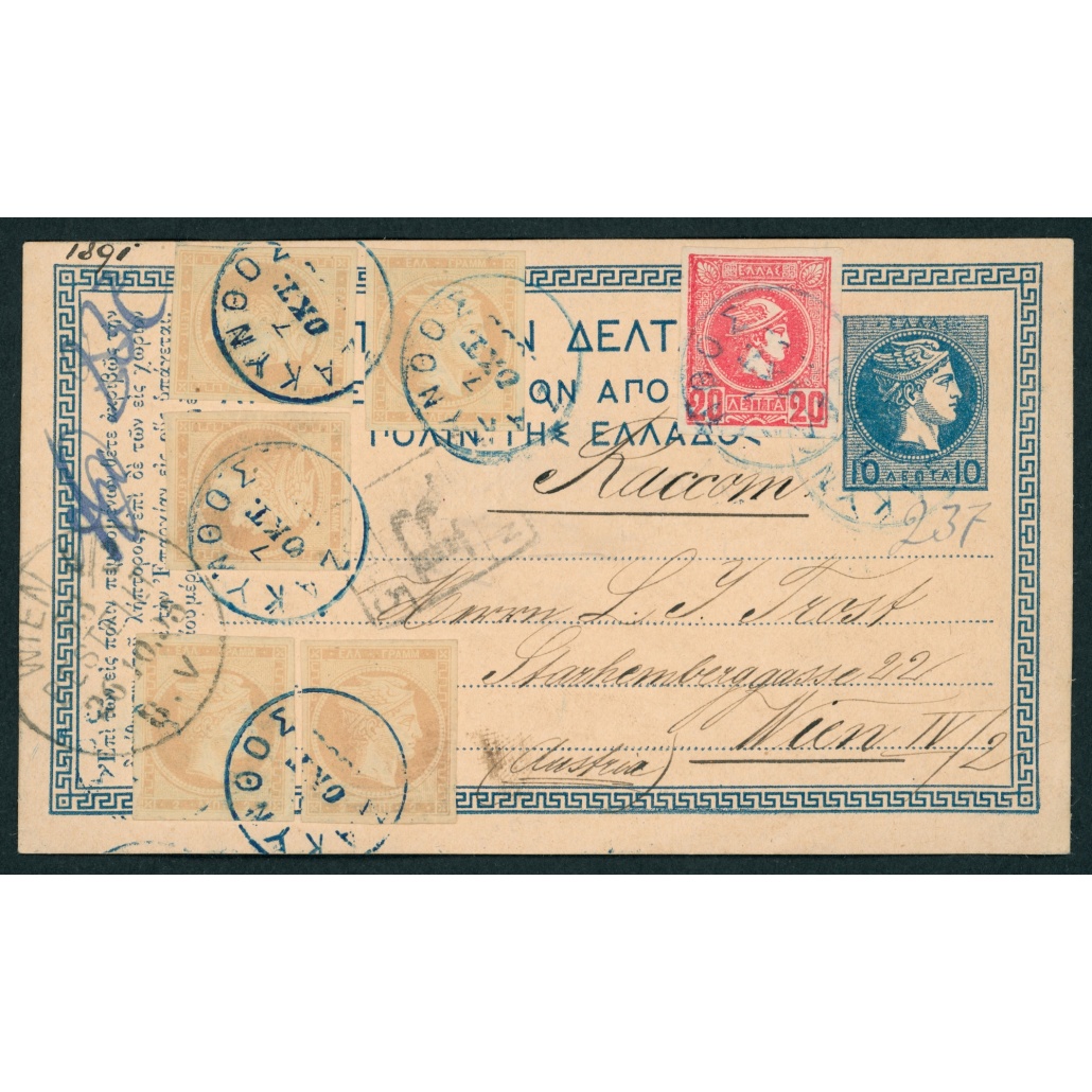 1895 Greece – Registered ten lepta postal stationery postcard with mixed franking of 6 stamps, sent to Austria.