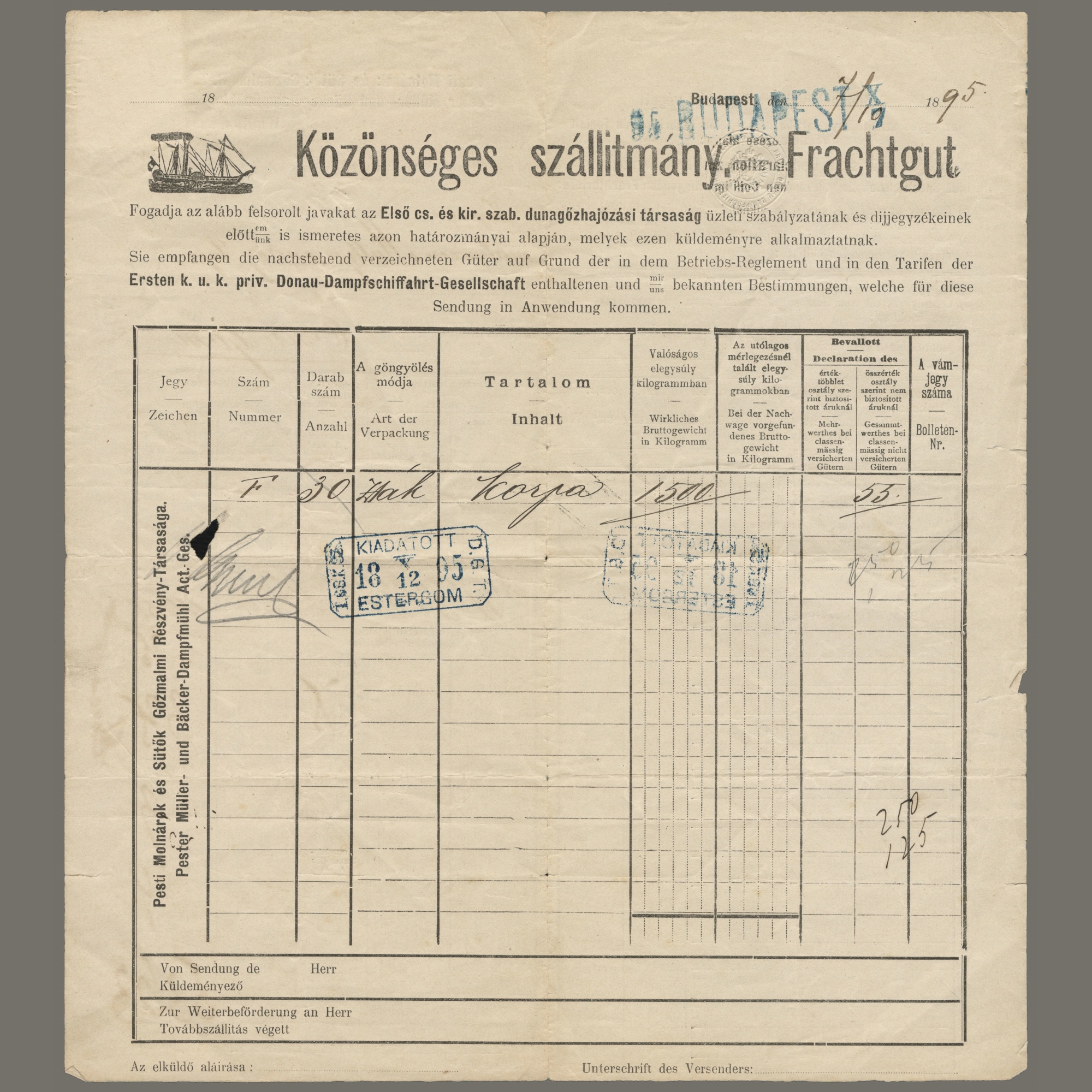 1895 Hungary – DDSG waybill with blue “D.G.T. Esztergom” mark