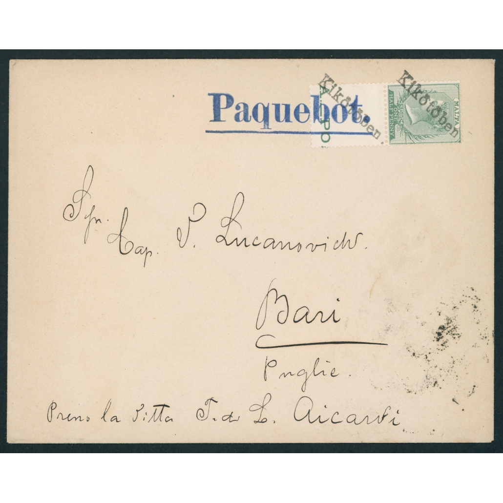 1896 Hungary – Peterdi ship’s mail letter posted in Malta “In the harbour” + Paquebot cancellations, sent to Italy with Maltese Half Penny stamp