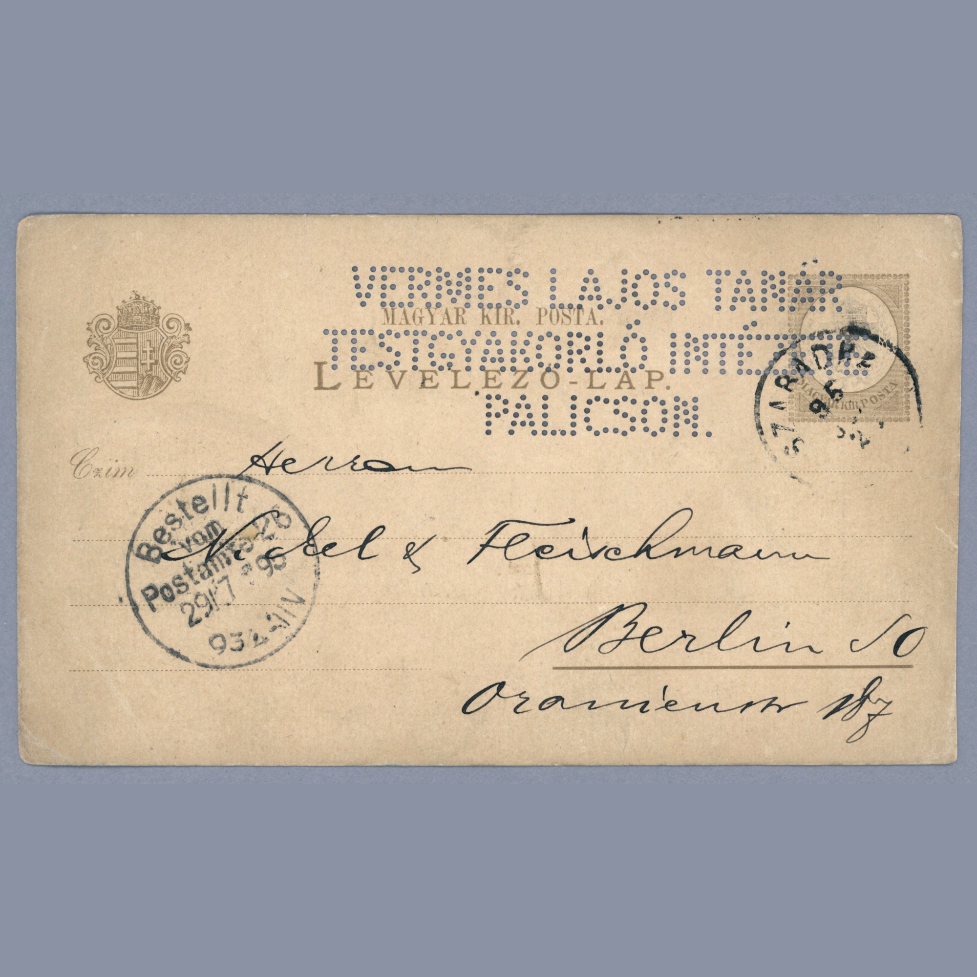 1897 Hungary – postal stationery with VERMES LAJOS perfin sent to Germany – a perfin rarity!