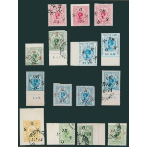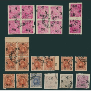 1899 – 1913 India – Kishangarh State, including rare yellow reversed 2 Anna + severel misprints