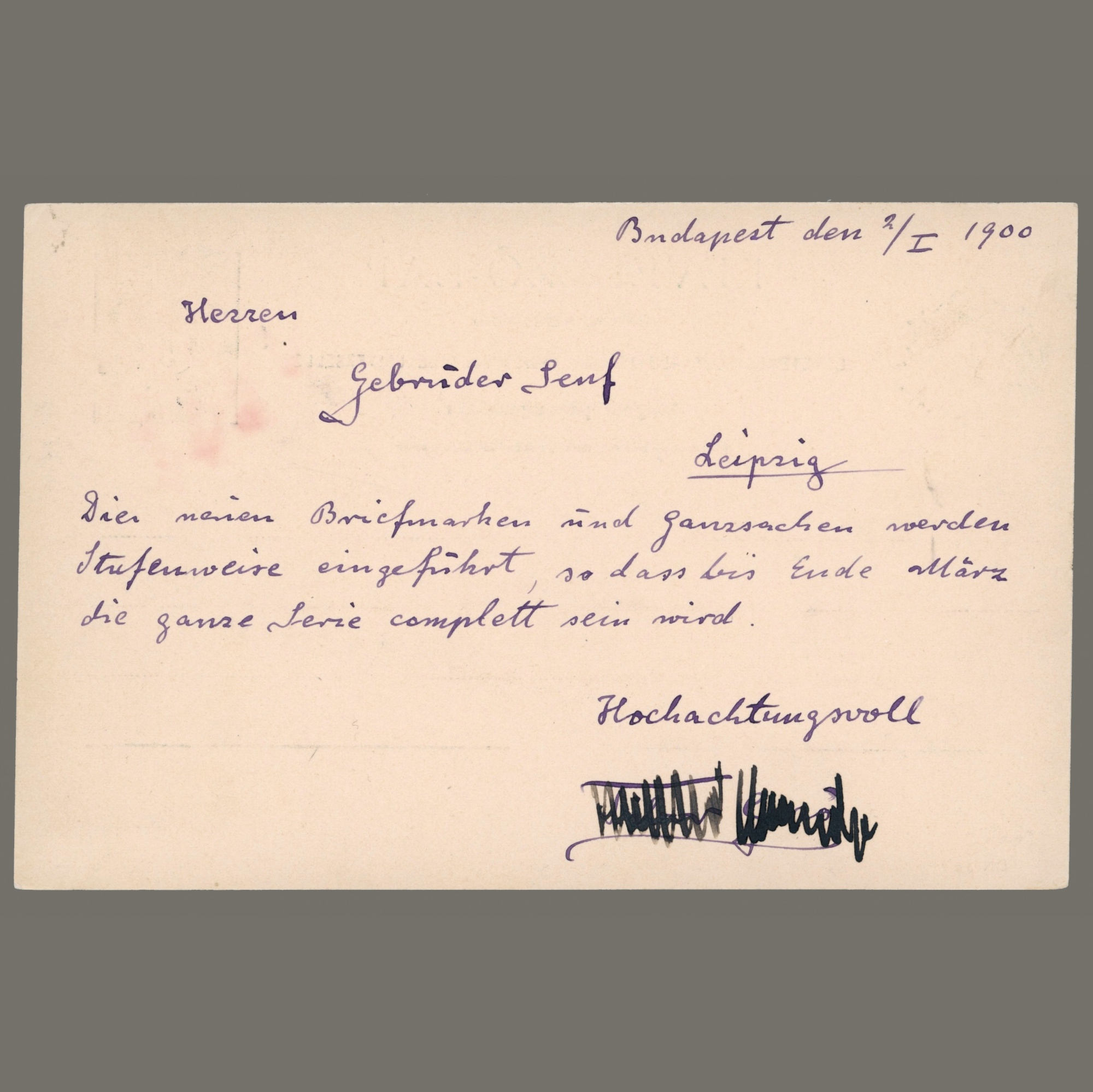 1900 Hungary – postal stationery for the GAPU area with second day (!) common use sent to Germany for the Senf company