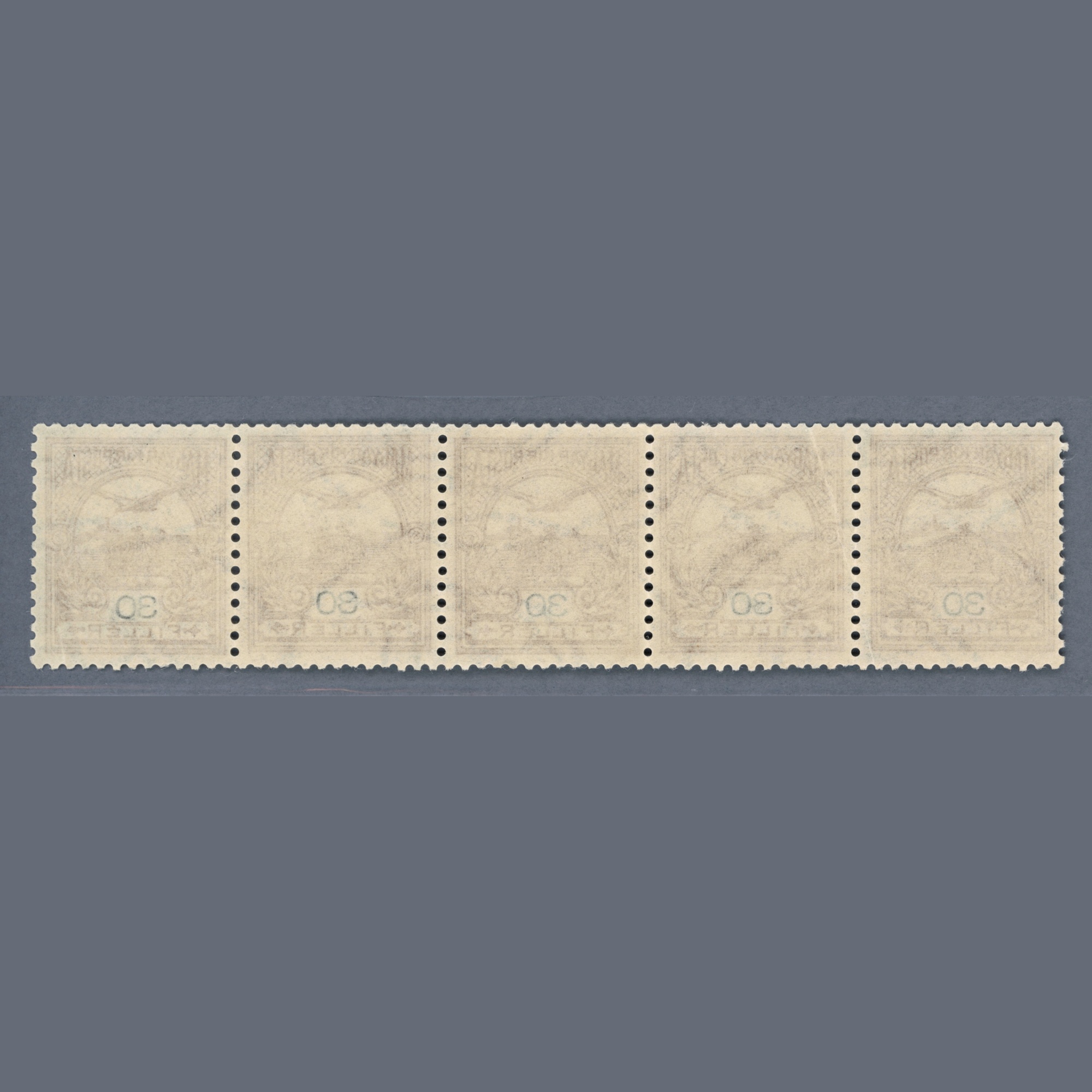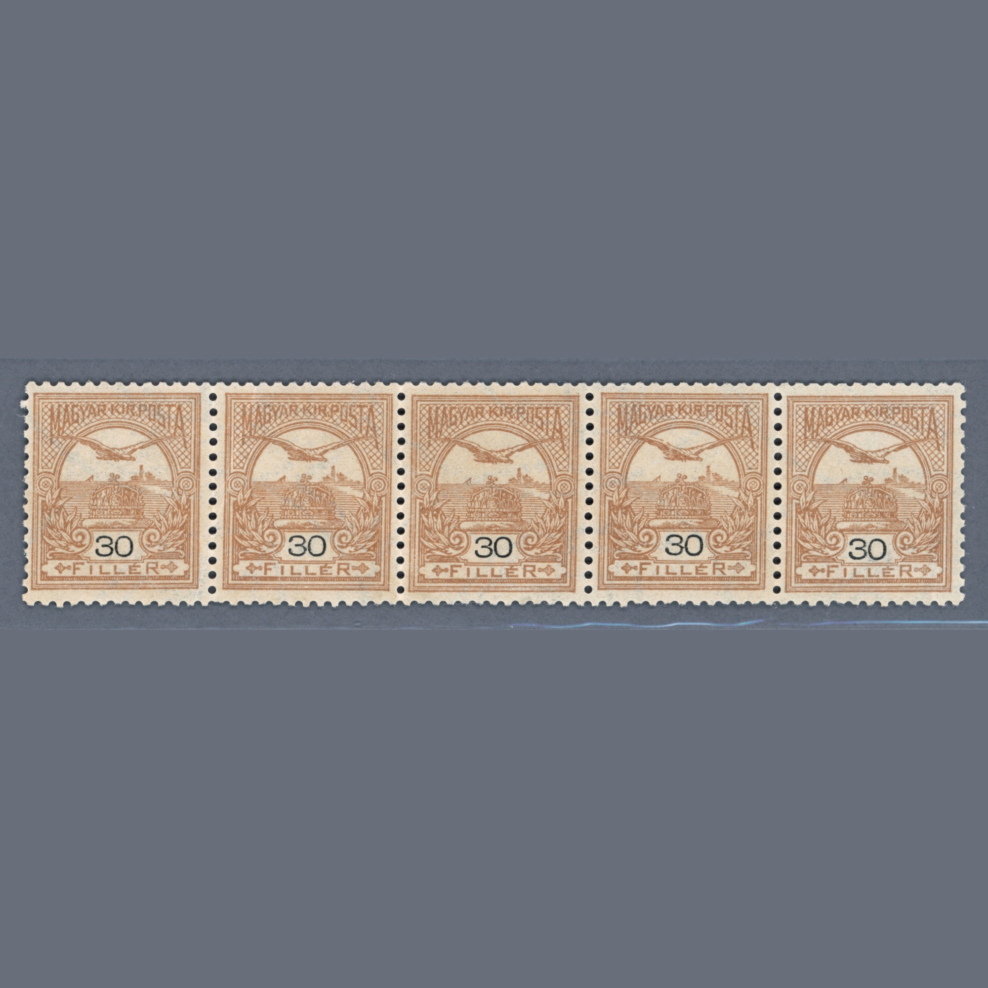 1900 Hungary – Turul 30 filler, perforation E (12:11,75) in five of stripe with full star watermark, mint never hinged ** | Phu: 360++ EUR