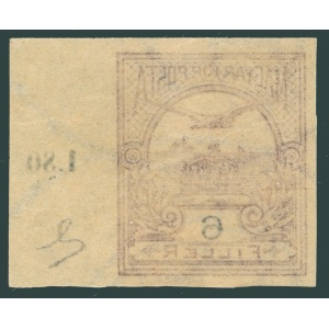 1900 Hungary – Turul mint * 6 fillér purple-brown imperforated postal stamp with sheet margin