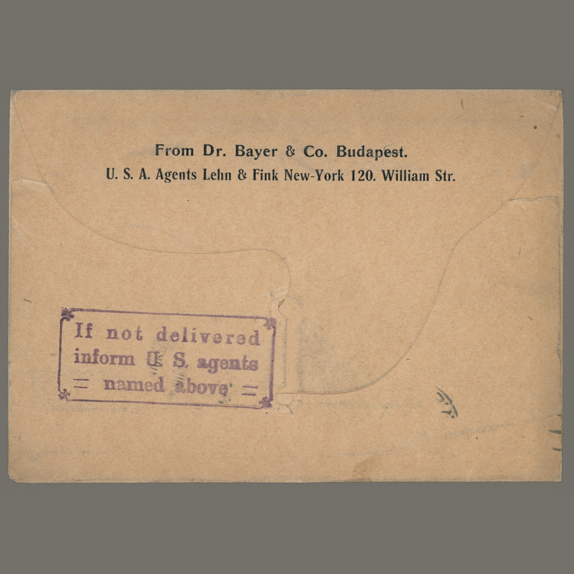 1907 Hungary – II. rate printed matter with three-colour franking sent to the United States of America – Bayer pharmaceutical compary