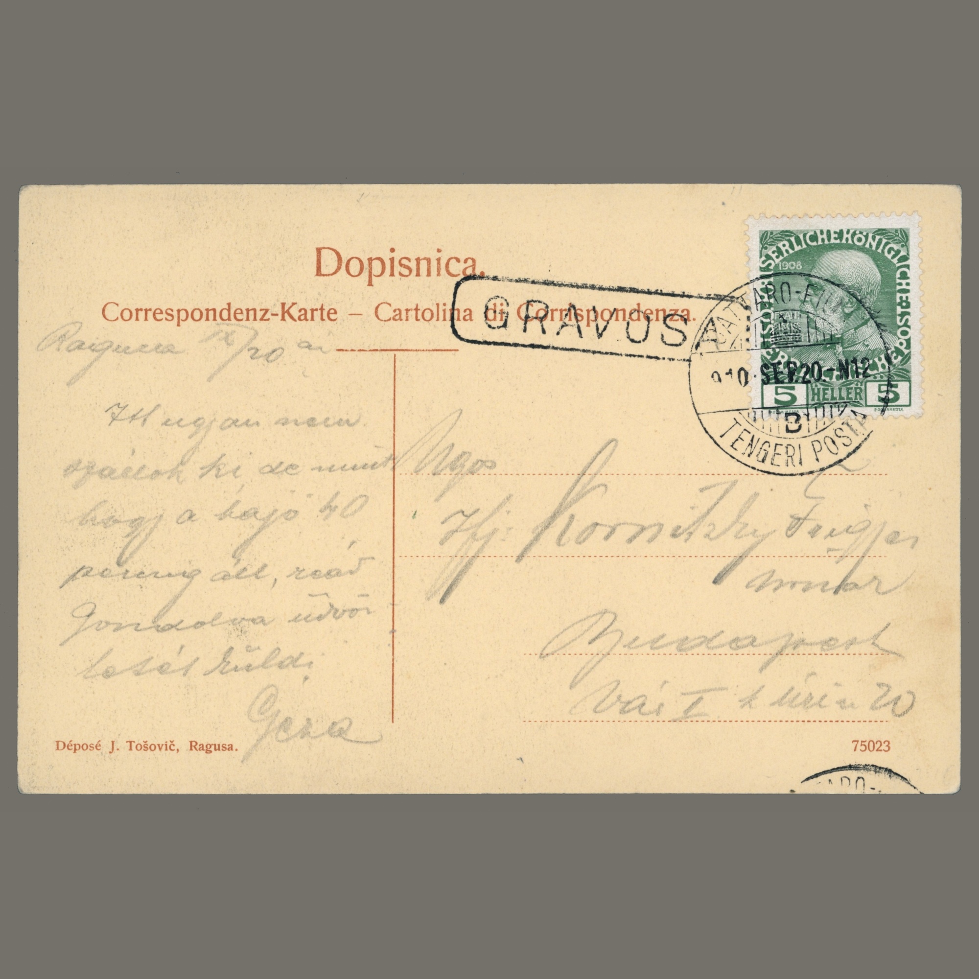 1910-1912 Fiume - CATTARO FIUME - TENGERI POSTA / A and B ship postmarks + GRAVOSA port postmark
