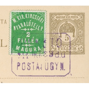 1911 Magura hotelpost – postal stationery postcard with Magura II. 2 filler stamp with purple REKETÓ postal agency postmark