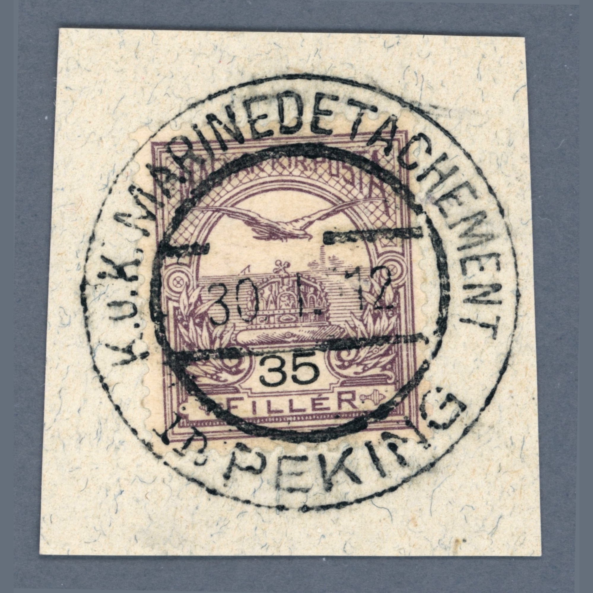 1912 Hungary – K.u.K. MARINEDETACHEMENT / PEKING postmark on turul 35 f